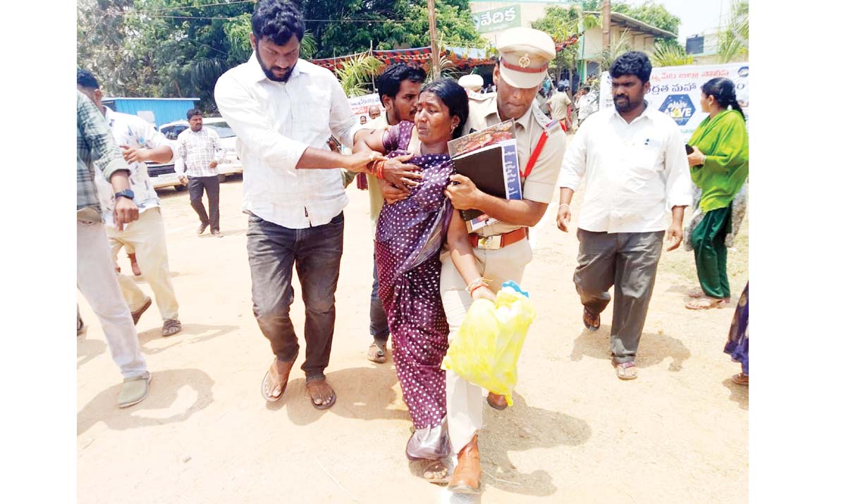 ఇందిరమ్మ ఇంటి బిల్లు మంజూరు విషయంలో తనకు అన్యాయం జరిగిందంటూ ఓ మహిళ కలెక్టర్ ఎదుట ఆత్మహత్యాయత్నం చేసుకుంది. ఈ ఘటన గురువారం సూర్యాపేట జిల్లా మునగాల మండల కేంద్రంలోని రైతువేదికలో జరిగింది. వివరాల్లోకెళితే.. మునగాల మండల కేంద్రంలోని రైతు వేదికలో ప్రజాపాలన- ప్రగతి ప్రణాళిక సభ నిర్వహించారు. జిల్లా కలెక్టర్ తేజస్ నంద్ లాల్ పవార్, ఎస్పీ నర్సింహా హాజరయ్యారు. సమావేశం అనంతరం కలెక్టర్ వెళ్లిపోతున్న సమయంలో.. తాడువాయి గ్రామానికి చెందిన దళిత మహిళ కోటా సునీత తనకు ఇందిరమ్మ ఇంటి మం జూరు విషయాన్ని కలెక్టర్ దృష్టికి తెచ్చింది. తనకు ఆరు మాసాల కిందట జరిగిన ప్రజాపాలన సభలో ఇల్లు మంజూ రైనట్టు ఆమె చెప్పారు. గ్రామసభలో లిస్టులో తన పేరున్నట్టు చదివి వినిపించారని తెలిపారు. దీంతో తమ పాత ఇంటిని కూల్చేసి కొత్త ఇంటి నిర్మాణం చేసుకున్నట్టు చెప్పారు. బిల్లు చెల్లించాలని పలుమార్లు అడిగినా అధికారులు పట్టించుకోవటం లేదని కన్నీరు పెట్టుకుంది. ఈ విషయమై బాధితురాలు పలుమార్లు గ్రీవిన్స్డేలో కలెక్టర్ దృష్టికి తెచ్చింది. అయితే సునీత పేరు మీద 2008లోనే ఇందిరమ్మ ఇల్లు వచ్చినట్టు అధికారులు చెబుతున్నారు. అందువల్ల ప్రస్తుతం ఇల్లు రాదంటున్నారు. అయితే, తనకు 2008లో ఇల్లు రాలేదని, నిర్మాణమే జరగలేదని ఆమె అధికారులకు మొరపెట్టుకున్నారు. ఆరు మాసాలుగా అది óకారుల చుట్టూ తిరిగి ఆమె విసుగు చెందింది. తీవ్ర మనస్తాపానికి గురైన ఆమె ఒక్కసారిగా కలెక్టర్ సమక్షంలోనే పురుగుల మందు తాగింది. పోలీసులు అధికారులు అడ్డుతగి లారు. అప్పటికే ఆమె పురుగుల మందు తాగటంతో వెంటనే పోలీసుల వాహనంలో కోదాడ ప్రభుత్వ వైద్యశాలకు తరలించారు. ఆమె మందు తాగుతున్న సమయంలో అక్కడున్న కొందరి కండ్లల్లోనూ చిల్లింది.