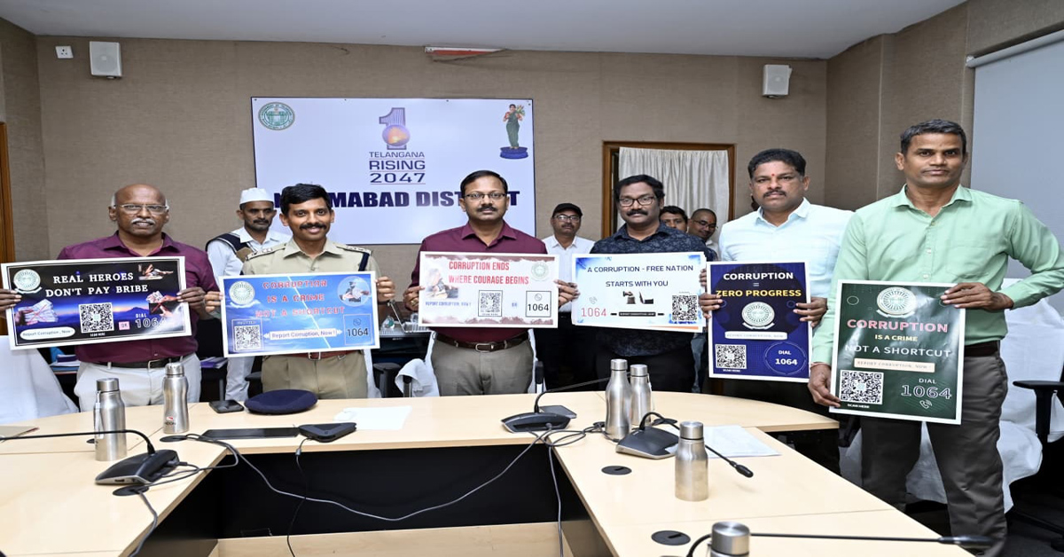 నవతెలంగాణ-కంఠేశ్వర్: అవినీతి నిరోధక శాఖ వారోత్సవాల సందర్భంగా గురువారం నిజామాబాద్ జిల్లా కలెక్టర్ వినయ్ కృష్ణ రెడ్డి అవినీతి నిర్మూలన పోస్టర్ ను ఆవిష్కరించారు. ఈ కార్యక్రమంలో నిజామాబాద్ పోలీస్ కమిషనర్ సాయి చైతన్య,డిస్ట్రిక్ట్ యూత్ స్పోర్ట్స్ ఆఫీసర్ పవన్, జిల్లా విద్యాశాఖ అధికారి అశోక్, అవినీతి నిరోధక శాఖ డిఎస్పి శేఖర్ గౌడ్, ఇన్స్పెక్టర్ నగేష్ తదితరులు ఆవిష్కరణ కార్యక్రమంలో పాల్గొన్నారు.