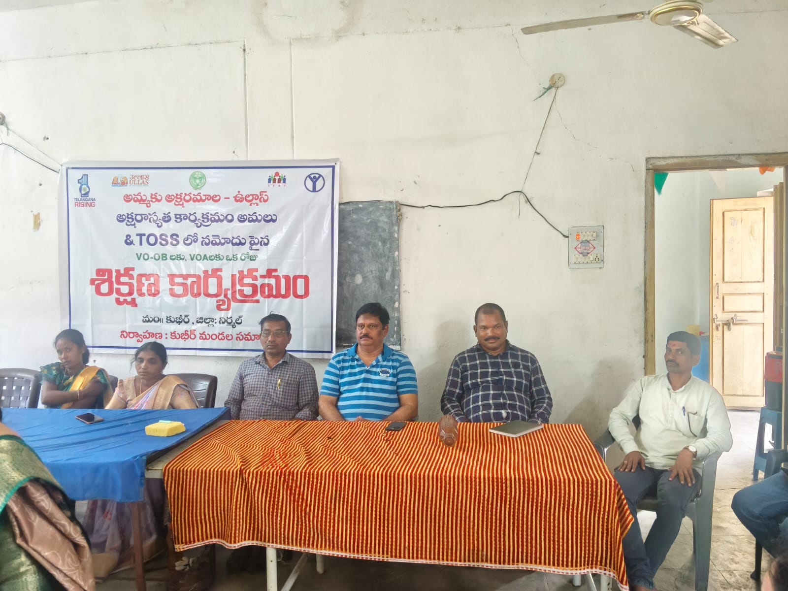 నవతెలంగాణ – కుభీర్ : మండల కేంద్రమైన కుభీర్ ఇందిరా క్రాంతి భవనంలో శనివారం మహిళా సంఘాలకు,గ్రామ సంఘం ప్రతి నిధులకు, గ్రామ సంఘం సహాయకులకు అక్షరస్యతపై మండల అధికారి సాగర్ రెడ్డి మండల విద్యాధికారి విజయ్ కుమార్ ఎపిఎమ్ లక్ష్మణ్ లుమహిళలకు టాస్,ఉల్లాస్ పై అవగహన సదస్సు చేపట్టడం జరిగింది. ఈ సందర్బంగా వారు మాట్లాడుతూ మండలంలో ఉన్న అన్ని గ్రామాల లో ఉన్న డ్వాక్రా మహిళల సంఘ సభ్యులకు ఓపెన్ టెన్త్ ఓపెన్ ఇంటర్ చదువుకునేందుకు అవకాశం కల్పించేలా చూడలని అన్నారు. అదే విదంగా ప్రతి గ్రామంలో నిరక్ష రాస్యులను గుర్తించి వారికి అక్షరాలు నేర్పేల కృషి చేసేందుకు తోడ్పాడాలన్నారు. ఈ కార్యక్రమంలో మహిళా సంఘ మండల అధ్యక్షులు లక్ష్మి ఎస్ ఆర్ సిఆర్పీ లు యు లలిత, పి సుజాత,సీసీ లు దత్తాత్రి భూమన్న విఠల్ పరశురాం గంగాధర్ అమూల్ మోహన్ సి ఏ లు మహిళా సంఘ సభ్యురాలు తదితరులు ఉన్నారు.
