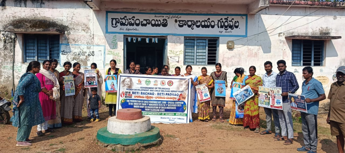 మహిళలు, పిల్లల సంక్షేమశాఖ అధ్యక్షతగా, మహిళా సాధికారిక కేంద్రం, జిల్లా బాలల పరిరక్షణ విభాగం సఖి కేంద్రం సంయుక్తంగా చైల్డ్ మ్యారేజ్ నిరోధక ప్రత్యేక ప్రచార కార్యక్రమం నిర్వహించడం జరుగింది. ఈ కార్యక్రమంలో భాగంగా ఈ రోజు గుర్రేవుల గ్రామం, కన్నాయిగూడెం మండలంలో పంచాయతీ సెక్రెటరీ ఆధ్వర్యంలో  గ్రామ బాలల పరిరక్షణ కమిటీ (VCPC) సమావేశాన్ని నిర్వహించారు. ఈ సమావేశంలో కమిటీ సభ్యులు హాజరై, గ్రామంలో బాలలందరికీ ఏదైనా సమస్య వచ్చినప్పుడు గ్రామ పరిధిలో గ్రామ బాలల పరిరక్షణ కమిటీ లు ఉన్నాయని వారికి తెలియజేయడం వల్ల పిల్లలసమస్యపరిష్కారమవుతుందని అదేవిధంగా ఏదైనా సమస్య వచ్చినప్పుడు 1098, 112 నెంబర్స్ కి ఫోన్ చేసి చెప్పొచ్చు, ఫోన్ చేసిన వారి వివరాలు గోప్యంగా ఉంటాయి అనీ గ్రామం కమిటీ సభ్యులందరికీ తెలియజేశారు.