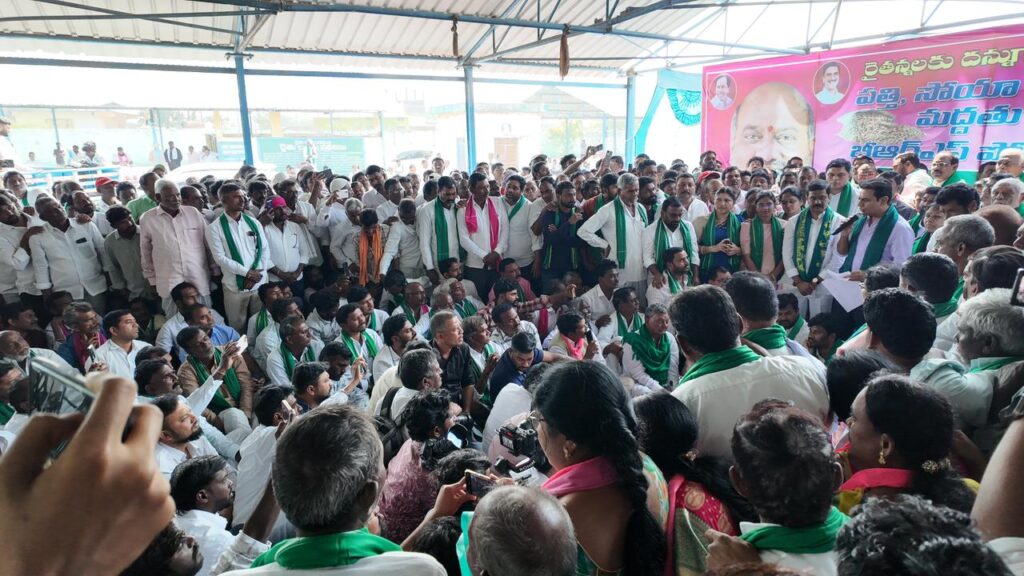 కేంద్ర, రాష్ట్ర ప్రభుత్వాల తీరుతో రాష్ట్రంలో రైతులు పడుతున్న అష్టకష్టాలను ఎలుగెత్తి చాటాలని నిశ్చయించింది. ఇందులో భాగంగా కేటీఆర్‌ ఆదిలాబాద్‌ పత్తి మార్కెట్‌ యార్డును సందర్శించారు. బోథ్ నియోజకవర్గంలోని నేరడిగొండ జిన్నింగ్ మిల్లు వద్ద సోయాబీన్, మొక్కజొన్న పంట కొనుగోలు కేంద్రాలను పరిశీలించారు. ఈ కార్యక్రమంలో మాజీ మంత్రి ప్రశాంత్‌ రెడ్డి, ఎమ్మెల్యేలు అనిల్‌ జాదవ్‌, కోవా లక్ష్మి, మాజీ ఎమ్మెల్యే జోగు రామన్న, బాల్క సుమన్‌, దివాకర్‌ రావు, కోనేరు కోనప్ప తదితరులు పాల్గొన్నారు.