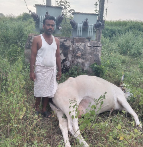 వెల్దండ మండల పరిధిలోని అల్లం తోట బావి తండాకు చెందిన ఇస్లావత్ జైపాల్ కు చెందిన పాడి ఆవు శనివారం వ్యవసాయ పొలంలోని విద్యుత్ ట్రాన్స్ ఫార్మర్ వద్ద ప్రమాదవశాత్తు విద్యుత్ షా గురై మృతి చెందింది. వ్యవసాయ పొలంలో మేత మేస్తుండగా ట్రాన్స్ ఫార్మర్ వద్ద ప్రమాదవశాత్తు విద్యుత్ గురై ఆవు అక్కడికక్కడే మృతి చెందింది. దాదాపు ఆవు విలువ రూ. 1.3 లక్షలు ఉంటుందని ప్రభుత్వపరంగా ఆర్థిక సహాయం అందజేయాలని కోరారు.