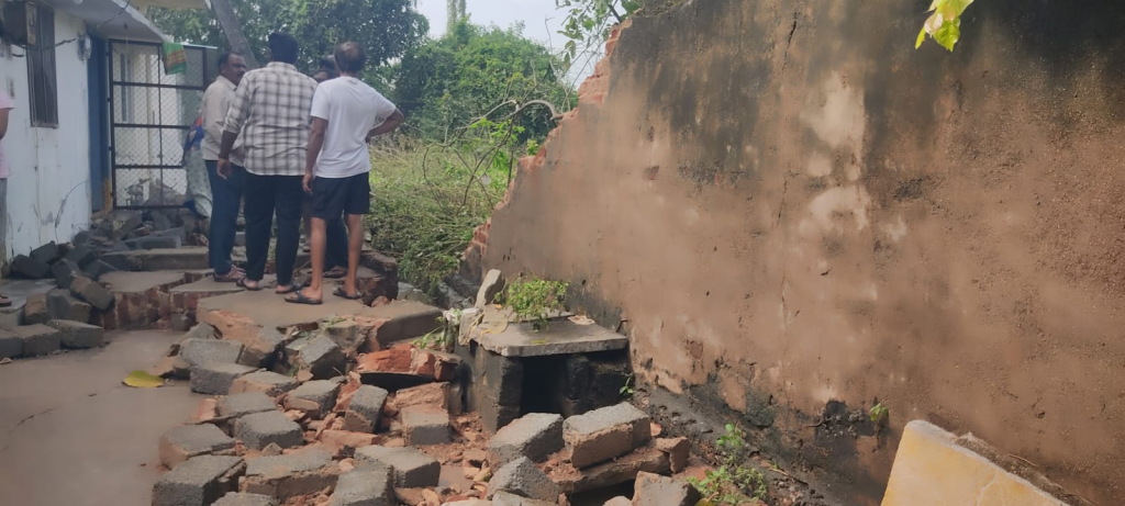 నవతెలంగాణ వరంగల్: ముంథా తుఫాను ప్రభావంతో బుధవారం కురిసిన భారీ వర్షాలకు దర్గా శౌరి నగర్ లో నర్సింగ్ కళాశాల గోడ కూలి విద్యుత్ స్తంభంపై పడటంతో ఆ విద్యుత్ స్తంభం పక్కనే ఇంటిపై పడి ప్రమాదకరంగా ఉంది. డ్రైనేజీ వ్యవస్థ సరిగా లేకపోవడం వల్ల నర్సింగ్ కళాశాలలోని వరద నీరంతా పక్కనే ఉన్న ఇండ్లల్లోకి చేరి నిత్యవసర వస్తువులు, పుస్తకాలు తడిసి ముద్దయ్యాయి. మట్టి చేరి అస్తవ్యస్తంగా మారాయి. ఇంట్లోకి చేరిన వరదనీటిలో పడి అడప కృష్ణమూర్తి అనే వృద్ధుడు మృతి చెందాడు.