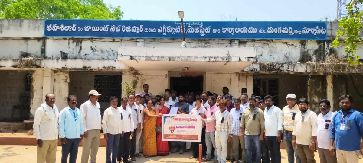 ఉద్యోగ ఉపాధ్యాయులకు సంబంధించిన సాధారణ బదిలీలు వెంటనే చేపట్టాలని, ఔట్సోర్సింగ్ ఉద్యోగులకు ప్రత్యేక కార్పొరేషన్ ఏర్పాటు చేసి ఉద్యోగ భద్రత కల్పించాలని డిమాండ్ చేశారు. ఈ కార్యక్రమంలో డిప్యూటీ తాసిల్దార్ కంట్లమయ్య, తెలంగాణ ప్రాంత ఉపాధ్యాయ సంఘం రాష్ట్ర అసోసియేట్ అధ్యక్షులు పర్వతం సంధ్యారాణి, తుంగతుర్తి మండల అధ్యక్షులు కార్తీక్ రెడ్డి, రుద్ర దేవేందర్, సైదులు, మల్లెపాక రవీందర్, గుజ్జ భాస్కర్, బింగి సోమయ్య, పాలవరపు సంతోష్, మండల పరిధిలోని వివిధ శాఖల ఉద్యోగులు తదితరులు పాల్గొన్నారు.