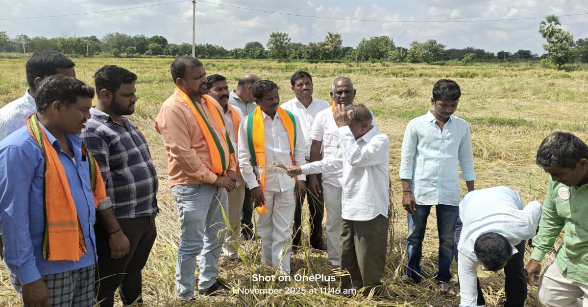 పంట నష్ట పోయిన రైతుల పొలాలను అధికారులు వెంటనే పర్యవేక్షించి నష్ట పరిహారం చెల్లించాలని బీజేపీ జిల్లా అధ్యక్షుడు ఉట్కూరి అశోక్ గౌడ్ ప్రభుత్వాన్ని డిమాండ్ చేశారు. శనివారం, యాదగిరి గుట్ట మండలం మల్లాపురం, రైతులను కలిసి అకాల వర్షానికి నీట మునిగిన వరి పంటలను ఉట్కూరి అశోక్ గౌడ్ సందర్శించారు. ఆయన మాట్లాడుతూ ఇప్పటికైనా రాష్ట్ర ప్రభుత్వం రైతులకు కేంద్ర ప్రభుత్వం ప్రవేశపెట్టిన ఫసల్ బీమా యోజన పథకాన్ని అమలు చేయాలని అన్నారు. తడిసిన ధాన్యని వెంటనే కొనుగోలు చేయాలి. ధాన్యానికి క్వింటాలు కు 2400 కేంద్ర ప్రభుత్వం గిట్టుబాటు ధర చెల్లిస్తుంది. రాష్ట్ర ప్రభుత్వం క్వింటాలు కు 500 రూపాయలు బోనస్ ఇస్తాను అని చెప్పి ఇప్పటి వరకు ఇవ్వకుండా రైతులను మోసం చేస్తుంది అని అన్నారు. ఈ కార్యక్రమంలో జిల్లా ప్రధాన కార్యదర్శి కాదురీ అచ్చయ్య, కిసాన్ మోర్చా రాష్ట్ర కార్యవర్గ సభ్యుడు గుంటిపల్లి సత్యనారాయణ, జిల్లా కౌన్సిల్ మెంబర్ గందమల్ల మహేశ్ గౌడ్, ఆకుల చంద్రమౌళి, కళ్ళెం శ్రీనివాస్, మండల ప్రధాన కార్యదర్శి గోపగని ప్రసాద్, శరజి లక్ష్మయ్య, గుండా నర్సింహులు, దొమ్మట రాజు, కర్రె శ్రీకాంత్, భగవత్ రెడ్డి, మంగ మహేందర్, కర్రె మహేందర్, బాల్ చారి, చంద్రశేఖర్ రెడ్డి, సాయి తదితరులు పాల్గొన్నారు.