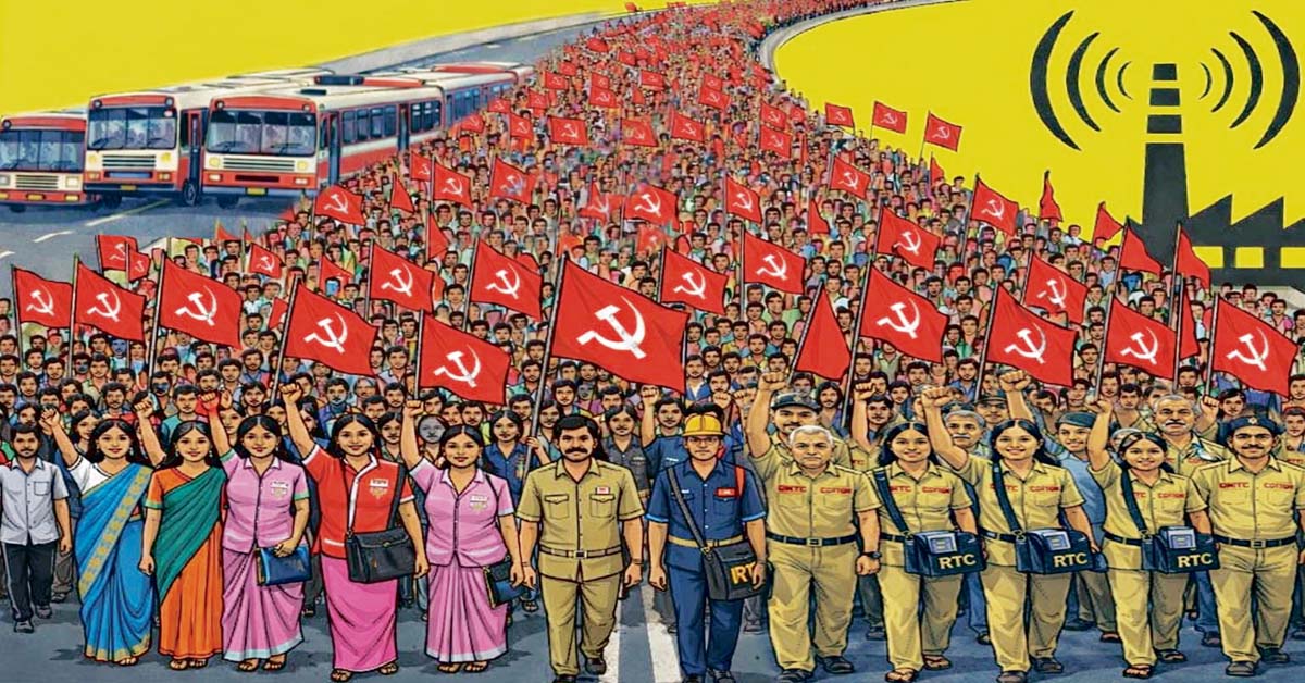 భారతదేశ ప్రజలపై, రైతు,కార్మికవర్గంపై కేంద్రపాలక బీజేపీ యుద్ధం ప్రకటించింది. కార్మికులు వందల ఏళ్లు పోరాటాలు చేసి సాధించుకున్న 29 చట్టాల స్థానంలో నాలుగు లేబర్‌కోడ్‌ల అమలుకు నోటిఫికేషన్‌తో పాటు రూల్స్‌ను కూడా విడుదల చేసింది. ప్రజలందరిపై భారంపడే విధంగా విద్యుత్‌ (సవరణ)బిల్లు -2025ని తెచ్చింది. గ్రామీణ ప్రాంతంలో ఉపాధికి గ్యారెంటీ కల్పిస్తున్న మహాత్మాగాంధీ గ్రామీణ ఉపాధి హామీ చట్టం స్థానంలో విబిజీరామ్‌ జీ పథకాన్ని ప్రవేశపెట్టింది. రైతుల నడ్డివిరిచేందుకు నూతన విత్తన బిల్లును తీసుకొచ్చింది. మొత్తం ప్రభుత్వరంగాన్ని ప్రయి వేటు చేయడం, పబ్లిక్‌, ప్రయివేటు పార్టనర్‌షిప్‌ పేరున అన్ని రంగాల్లో కార్పొరేట్లకు ద్వారాలు తెరిచింది. ప్రజల సొమ్మును ఇన్సెంటివ్‌ల పేరుతో కార్పొరేట్లకు కట్టబెడుతున్నది. వీటన్నింటిని సమీక్షిం చిన పది కేంద్రకార్మిక సంఘాలు, ప్రతిఘటనో ద్యమానికి పిలుపునిచ్చాయి. అందులో భాగంగా 2026 ఫిబ్రవరి 12న ఒక్కరోజు సమ్మె చేయాలని, బీజేపీ సర్కార్‌ తన విధానాల నుండి వెనక్కి రాకపోతే బహుళదిన సమ్మెలకు సిద్ధ పడాలని పిలుపునిచ్చాయి. భారతదేశ కార్మికవర్గం చేస్తున్న సమ్మెకు వ్యవసాయ కార్మిక, రైతు, ఉద్యోగ సంఘాలు మద్దతు ప్రక టించాయి. 420 రైతు సంఘాల ఐక్యవేదిక ‘సంయుక్త కిసాన్‌ మోర్చా’ కూడా కార్మిక సమ్మెకు మద్దతు ప్రకటించింది. కిందిస్థాయి నుండి పైస్థాయి వరకు సభలు, సమావేశాలు జరపడం, కరపత్రాలు పంచడం, బుక్‌లెట్స్‌ అమ్మడం ద్వారా సమ్మెకు సిద్ధమైంది.
