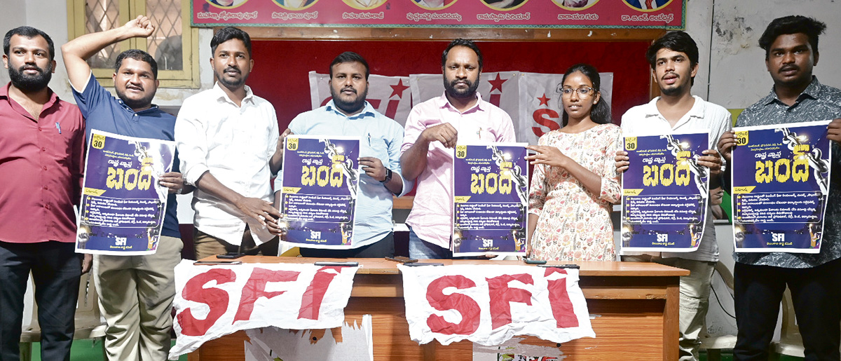 రాష్ట్రంలో ఆంండ్ల నుంచి పెండింగ్‌ ఉన్న ఫీజు రీయింబర్స్‌మెంట్స్‌, స్కాలర్‌షిప్‌ను వెంటనే విడుదల చేయాలని, కాంగ్రెస్‌ ఇచ్చిన హామీ ప్రకారం కనీసం రూ.1200 కోట్లు అయినా విడుదల చేయాలని ఎస్‌ఎఫ్‌ఐ డిమాండ్‌ చేసింది. ఈనెల 30న రాష్ట్ర వ్యాప్తంగా డిగ్రీ, పీజీ, ఇంజినీరింగ్‌, ఫార్మసి, మెడికల్‌, ఇతర ప్రొఫెషనల్‌ విద్యాసంస్థలు, యూనివర్సిటీల బంద్‌కు ఎస్‌ఎఫ్‌ఐ పిలుపునిచ్చిన నేపథ్యంలో హైదరాబాద్‌ బాగ్‌లింగంపల్లిలోని ఎస్వీకేలో సోమవారం రాష్ట్ర అధ్యక్ష ప్రధాన కార్యదర్శులు ఎస్‌.రజనీకాంత్‌, టి.నాగరాజు విలేకరుల సమావేశం నిర్వహించారు. బంద్‌ పోస్టర్‌ను ఆవిష్కరించారు.రజనీకా ంత్‌ మాట్లాడుతూ.. రాష్ట్రంలో ఆంండ్ల నుంచి సుమారు రూ.8 వేల కోట్లకుపైగా ఫీజురీయింబర్స్‌మెంట్‌, స్కాలర్‌షిప్‌ బకాయిలు విడుదల చేయకుండా ప్రభుత్వం నిర్లక్ష్యం చేస్తున్నదని అన్నారు. కాంగ్రెస్‌ అధికారంలోకి వచ్చిన తర్వాత మరింత పారదర్శకంగా అమలు చేస్తామని చెప్పి.. ఇప్పటి వరకు కనీసం వారు ఇచ్చిన టోకెన్ల నిధులు కూడా ఇవ్వలేదని వాపోయారు. విద్యాసంస్థల యాజామన్యాలు బంద్‌ ప్రకటించి సంవత్సరం కాలంగా పోరాడితే రూ.1200 కోట్లు ఇస్తామని చెప్పిన ప్రభుత్వం మాట తప్పిందన్నారు. యాజమాన్యాలు విద్యార్థుల నుంచి బలవంతంగా ఫీజులు వసూళ్లు చేస్తున్నాయని, లక్షలాది రూపాయలు చెల్లించాలని తీవ్ర ఒత్తిడి చేస్తున్నాయని ఆవేదన వ్యక్తం చేశారు. ప్రభుత్వం విద్యార్థులకు భరోసా ఇచ్చేలా ఫీజుల చెల్లింపు కోసం గ్యారంటీ ఇచ్చి.. భవిష్యత్‌ నష్టపోకుండా చర్యలు తీసుకో వాలని డిమాండ్‌ చేశారు. పేద విద్యార్థులు తీవ్ర ఇబ్బందులు పడుతున్నా తన వద్దే విద్యాశాఖను అట్టిపెట్టుకున్న సీఎం రేవంత్‌రెడ్డి కనీసం పట్టించుకోవడం లేదని ఎస్‌ఎఫ్‌ఐ రాష్ట్ర ప్రధాన కార్యదర్శి నాగరాజు విమర్శించారు. తక్షణమే ప్రభుత్వం చర్చలు జరిపి ఈ సమస్యను పరిష్కరించాలని కోరారు. నవంబర్‌ మొదటి వారంలో బకాయిలు విడుదల చేయాలని, లేకపోతే చలో హైదరాబాద్‌ కార్యక్రమం చేపడతామని హెచ్చరించారు. ఎమ్మెల్యేలు, మంత్రులను అడ్డుకుంటామని అన్నారు. విద్యపై ముఖ్యమంత్రికి అవగాహన లేకపోవడం వల్లే.. రాష్ట్రంలో విద్యారంగం ఆగమాగం అవుతోందని అన్నారు. బెస్ట్‌ అవైలబుల్‌ స్కీం బకాయిలు, డైట్‌, కాస్మోటిక్‌ చార్జీలు బకా యిలు, ఫీజులు బకాయిలపై సీఎం వెంటనే స్పందించాలని డిమాండ్‌ చేశారు. విద్యారంగం సమస్యలపై సమీక్ష చేయా లన్నారు. రాష్ట్ర యూనివర్సిటీలలో డైట్‌ చార్జీలు విడుదల చేయలేదని, వర్సిటీలు అభివృద్ధికి దూరమవుతున్నాయని ఆందోళన వ్యక్తం చేశారు. అందుకే ఈ సమస్యల పరిష్కారా నికి ఈనెల 30న రాష్ట్ర వ్యాప్తంగా ఉన్నత విద్యసంస్థలు, ప్రొఫెషనల్‌ విద్యాసంస్థలు, యూనివర్సిటీల బంద్‌ నిర్వహిస్తున్నామన