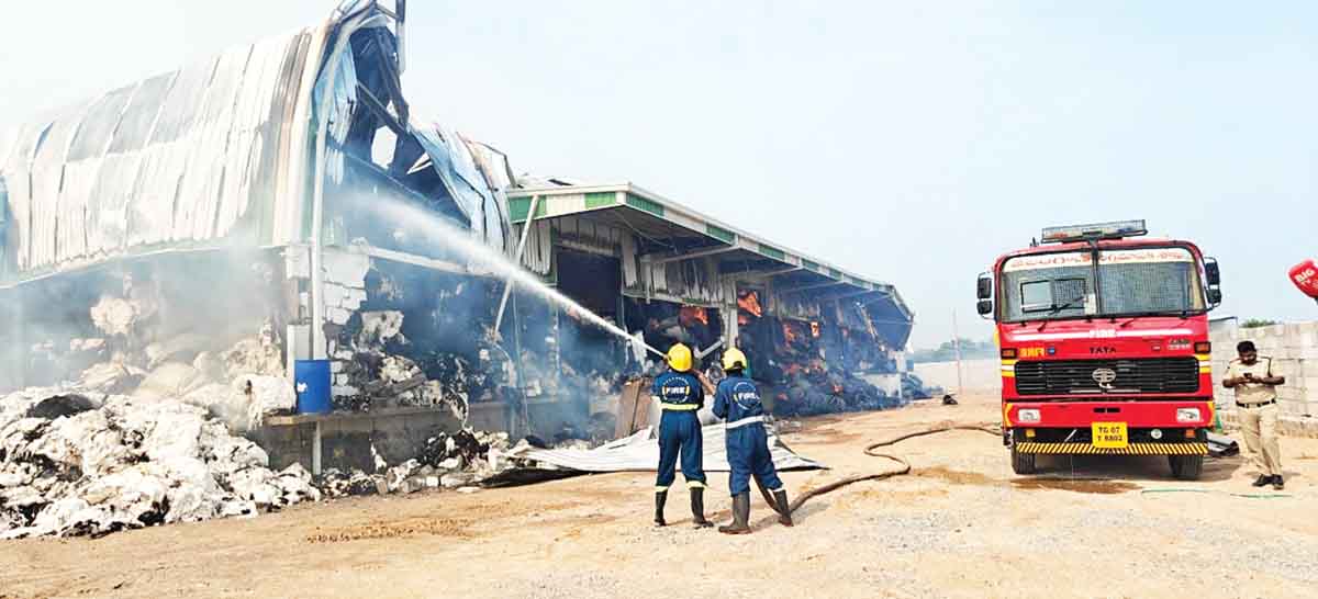 శ్రీకృష్ణ సీసీఐ గోదాంలో అగ్నిప్రమాదం