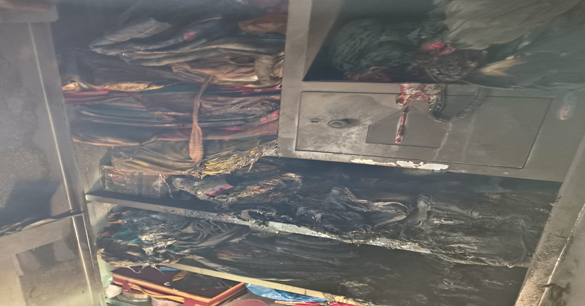 నవతెలంగాణ-భువనగిరి: భువనగిరి అర్బన్‌లోని ఓ ఇంట్లో అగ్నిప్రమాదం సంభ‌వించింది. ఆదివారం మధ్యాహ్నం సుమారు 3 గంటల సమయంలో తడక ప్రకాష్ ఇంట్లో మంటలు అంటుకొన్నాయి. మంట‌ల ధాటికి న‌గదు, బంగారం, బియ్యం, బట్టలు పూర్తిగా దగ్ధమయ్యాయి. ప్ర‌మాద‌ సమయంలో ఇంట్లో ఎవరూ లేరు ప్రాణ‌న‌ష్టం జ‌ర‌గ‌లేదు. ఇంట్లో నుండి మంటలు రావడంతో ఇరుగు పొరుగు వారు చూసి ఇంటి తాళం పగలకొట్టి మంటలు ఆర్పారు. సుమారు 5 లక్షల వరకు నష్టం జరిగిందని బాధితులు తెలిపారు.