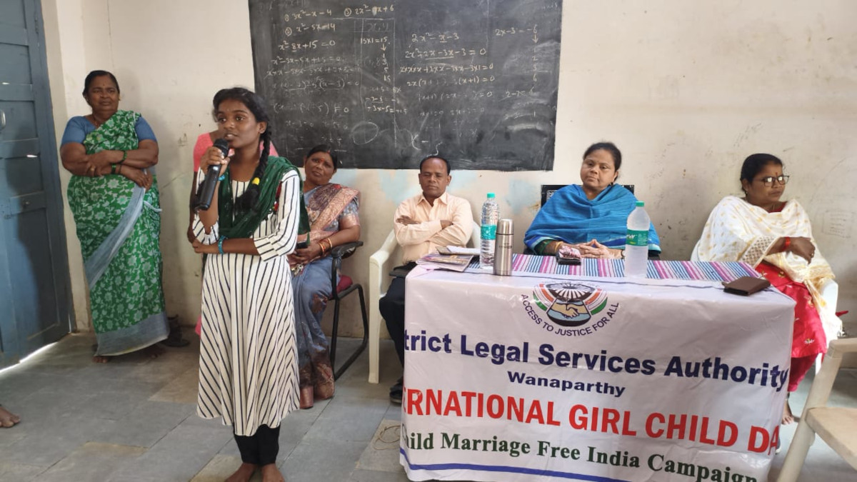 బాలికలు ఉన్నత శిఖరాలను అధిరోహించాలి అని జిల్లా న్యాయ సేవాధికార సంస్థ కార్యదర్శి, సీనియర్ సివిల్ జడ్జ్ వి రజని అన్నారు. శనివారం వనపర్తి జిల్లాలోని షెడ్యూల్ ట్రైబ్స్ వసతి గృహంలో అంతర్జాతీయ బాలికల దినోత్సవం సందర్భంగా జిల్లా న్యాయ సేవ అధికార సంస్థ కార్యదర్శి వి రజని బాలికలతో సమయాన్ని గడిపారు. ఈ సందర్భంగా విద్యార్థులకు పాటల పోటీలు, బొమ్మలు గీయడం, ఉపన్యాసాలు ఇవ్వడం, నృత్య ప్రదర్శనల పోటీలు నిర్వహించారు. పోటీలో గెలిచిన విద్యార్థులకు, పాల్గొన్న విద్యార్థులకు బహుమతులను అందజేశారు. కార్యక్రమంలో డిప్యూటీ లీగల్ ఎయిడ్ డిఫెన్స్ కౌన్సిల్ కృష్ణయ్య, అసిస్టెంట్ లీగల్ ఎయిడ్ డిఫెన్స్ కౌన్సిల్ శ్రీదేవి, వసతిగృహ నిర్వాహకురాలు పద్మజ, పారా లీగల్ వాలంటీర్ ప్రతాపరెడ్డి పాల్గొన్నారు.