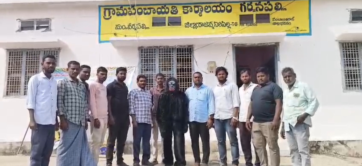 వీర్నపల్లి మండలం గర్జనపల్లి గ్రామంలో కోతుల వల్ల ప్రజలు పడుతున్న ఇబ్బందులను గమనించిన అంబేడ్కర్ యువజన సంఘం అధ్యక్షులు గజ్జెల ప్రశాంత్, యూట్యూబ్ ద్వారా సమాచారాన్ని సేకరించి ఒక ఉపాయం ఆలోచించారు. దాదాపు రూ. 3 వేల ఖర్చు చేసి ఆన్లైన్ ద్వారా ఒక గొరిల్లా డ్రెస్ సూట్ను కొనుగోలు చేశారు. ఈ సూట్ను గ్రామ సర్పంచ్ రాకేశ్ గౌడ్ వితరణగా అందజేశారు.సర్పంచ్ రాకేశ్ గౌడ్ మాట్లాడుతూ.. ప్రశాంత్ చేసిన ఈ వితరణను అభినందించారు. ఈ డ్రెస్ కోడ్ను ప్రతిరోజూ గ్రామ పంచాయతీ సిబ్బందికి ధరింపజేసి వీధుల వెంబడి తిప్పుతామని తెలిపారు. దీనివల్ల కోతులు భయపడి పారిపోతున్నాయని పేర్కొన్నారు. ఈ కార్యక్రమంలో వార్డు సభ్యులు గజ్జెల శ్రీనివాస్, ఇసంపల్లి అజయ్ కుమార్, కార్యదర్శి వెంకటేష్, యువకులు తదితరులు పాల్గొన్నారు.