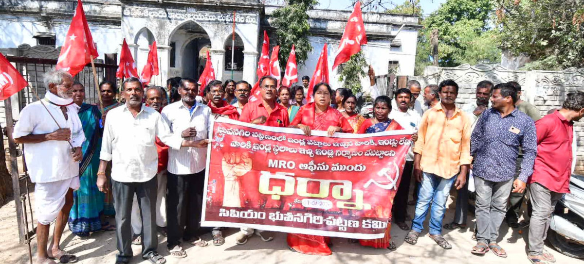 భువనగిరి పట్టణ శివారులోని 700 సర్వే నెంబర్ లోని ప్రభుత్వ భూమిని చదును చేసి ప్లాట్లు చేసి పేద ప్రజలకు ఇండ్లు,ఇండ్ల స్థలాలను ఇవ్వాలని సీపీఐ(ఎం) రాష్ట్ర కమిటీ సభ్యురాలు బట్టుపల్లి అనురాధ అన్నారు. బుధవారం సీపీఐ(ఎం) పట్టణ కమిటీ ఆధ్వర్యంలో ఇండ్లు లేని పేద ప్రజలతో కలిసి బంజారాహిల్స్ నుండి స్థానిక తహసిల్దార్ కార్యాలయం వరకు ర్యాలీ నిర్వహించి అనంతరం ధర్నా జరిగిందని తెలిపారు. సందర్భంగా ఆమె మాట్లాడుతూ.. ఇటీవల సీపీఐ(ఎం) పట్టణ కమిటీ పోరాట ఫలితంగా 700 సర్వే నెంబర్లులో అధికారులు వచ్చి సర్వే నిర్వహించి 20 ఎకరాలు సీలింగ్ భూమిగా, 18 ఎకరాలు పట్టాగా మొత్తం 38 ఎకరాలు ఉన్నదని తెలియజేశారని అన్నారు.