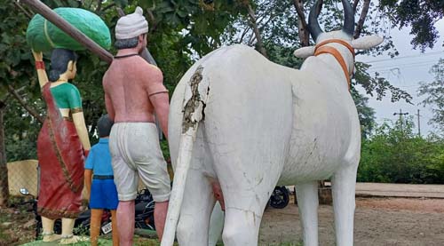 -ఏఓ కార్యాలయం వద్ద ధ్వంసమైన రైతు పాడి ఆవు ప్రతిమ