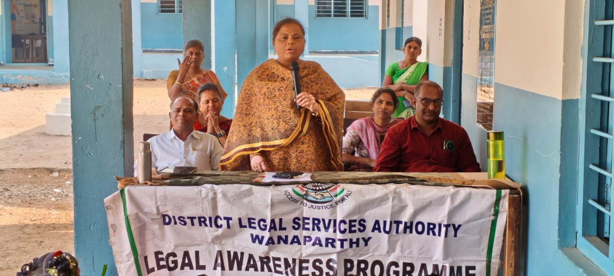 మైనర్లు వాహనాలు నడపరాదు అని జిల్లా న్యాయ సేవాధికార సంస్థ కార్యదర్శి వి రజని అన్నారు. శుక్రవారం వనపర్తి జిల్లా నాగవరం గ్రామంలోని మండల పరిషత్ ప్రాథమిక పాఠశాలలో జిల్లా న్యాయ సేవాధికార సంస్థ ఆధ్వర్యంలో విద్యార్థులకు చట్టాలపై అవగాహన సదస్సు జరిగింది. ఈ సదస్సులో జిల్లా న్యాయ సేవ అధికార సంస్థ కార్యదర్శి మాట్లాడుతూ మోటార్ వాహనాల చట్టం ప్రకారం 18 సంవత్సరాల లోపు బాల బాలికలు వాహనాలు నడపడం చట్టరీత్యా నేరమని తెలియజేశారు. బాల్య వివాహాల నిషేధ చట్టం ప్రకారం మైనర్ల వివాహాలకు సహకరించిన ప్రతి ఒక్కరు కూడా చట్టప్రకారంగా శిక్ష అర్హులు అవుతారని తెలియజేశారు. బాల బాలికలకు గుడ్ టచ్ బ్యాడ్ టచ్ గురించి వివరించారు. మరియు విద్యార్థులు వినోదం, సందేశాత్మకమైన, నీతి కథలు వంటి పుస్తకాలను చదవడం వలన సమయస్ఫూర్తి పెరుగుతుందని తెలియజేశారు. మరియు ఉచిత న్యాయ సహాయం గురించి వివరించారు. ఉచిత న్యాయ సలహాల కొరకు 15100 టోల్ ఫ్రీ నెంబర్ ను సంప్రదించవచ్చు అని తెలియజేశారు. కార్యక్రమంలో డిప్యూటీ లీగల్ ఎయిడ్ డిఫెన్స్ కౌన్సిల్స్ కృష్ణయ్య , పాఠశాల ప్రధానోపాధ్యాయులు ఉపాధ్యాయ బృందం మరియు విద్యార్థులు పాల్గొన్నారు.