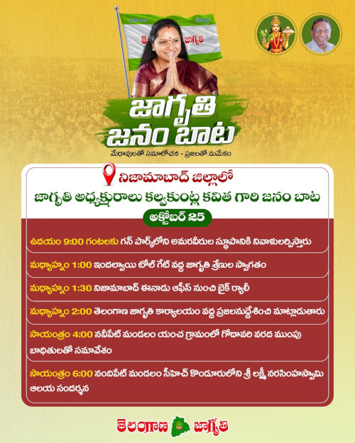పుట్టుక నీది, చావు నీది. బతుకంతా దేశానిది అన్నారు సుప్రసిద్ధ కవి కాళోజీ. ఆ మాటల స్ఫూర్తిని అక్షరాల ఆదర్శంగా తీసుకున్నట్లున్నారు కల్వకుంట్ల కవిత. తన బతుకంతా తెలంగాణకే అంకితం అన్నట్టుగా ముందుకు సాగుతున్నారు. తెలంగాణ ఉద్యమం ఉవ్వెత్తున సాగుతూన్న రోజుల్లో స్వరాష్ట్ర సాధన పోరాటంలోకి వచ్చారు కవిత. ఉమ్మడి రాష్ట్రంలో నిర్లక్ష్యానికి గురైన తెలంగాణ కళలు, సంస్కృతి, సంప్రదాయాలకు పూర్వ వైభవం తీసుకురావడానికి కవిత కృషి చేశారు. బతుకమ్మను విశ్వవ్యాప్తం చేయడంలో కవిత సాగించిన కృషి ప్రతి ఒక్కరి కళ్ల ముందు ఉన్నది. స్వరాష్ట్ర సాధన ఉద్యమంలో ముందుండి నడిచిన కవిత స్వరాష్ట్రంలో నిర్లక్ష్యానికి గురైన ఉద్యమకారులు, అమరవీరుల కుటుంబాలు, సబ్బండ వర్గాలకు అండగా నిలిచేందుకు తెలంగాణ జాగృతి జనంబాట కార్యక్రమానికి శ్రీకారం చుట్టారు. రాబోయే నాలుగు నెలల ప్రజల్లోనే ఉండనున్నారు. వారి కష్టాలు, సమస్యలను దగ్గరి నుంచి చూసి తెలుసుకోనున్నారు. జాగృతి జనంబాట యాత్ర తన సొంత జిల్లా నిజామాబాద్ నుంచి ఆమె ప్రారంభించనున్నారు.