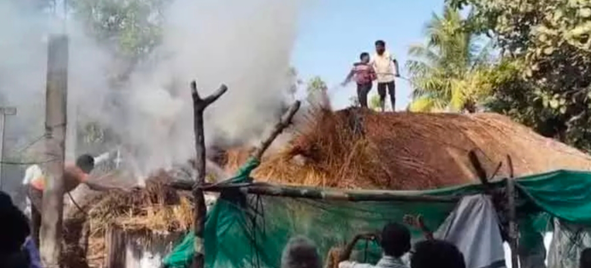 విద్యుత్ ఘాతంతో పూరి గుడిసె దగ్ధం