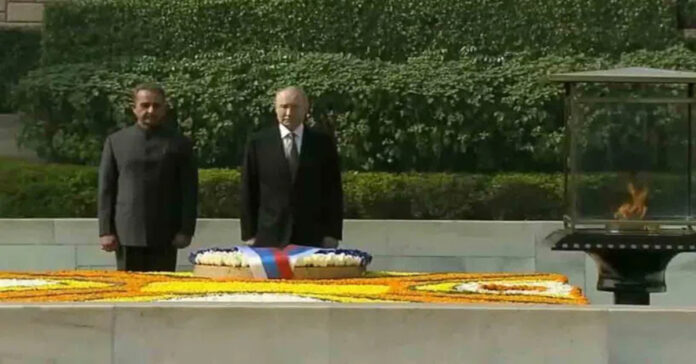 నవతెలంగాణ – హైదరాబాద్: భారత పర్యటనకు విచ్చేసిన రష్యా అధ్యక్షుడు వ్లాదిమిర్ పుతిన్కు శుక్రవారం ఢిల్లీలో ఘన స్వాగతం లభించింది. పర్యటనలో భాగంగా ఆయన రాజ్ఘాట్ను సందర్శించి జాతిపిత మహాత్మా గాంధీకి నివాళులర్పించారు. గాంధీ సమాధి వద్ద పుష్పగుచ్ఛం ఉంచి ఆయన శ్రద్ధాంజలి ఘటించారు. ఈ సందర్భంగా పుతిన్ వెంట కేంద్ర విదేశాంగ శాఖ సహాయ మంత్రి కీర్తి వర్ధన్ సింగ్ ఉన్నారు. అనంతరం పుతిన్ అక్కడి సందర్శకుల పుస్తకంలో సంతకం చేశారు.