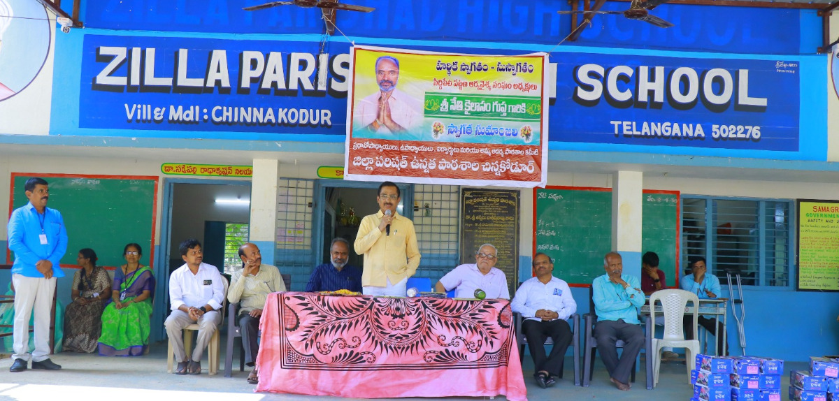 అన్ని వసతులతో కూడిన విద్య ప్రభుత్వ పాఠశాలలోనే  అందుతుందని జిల్లా విద్యాధికారి శ్రీనివాసరెడ్డి అన్నారు. బుధవారం మండల కేంద్రమైన చిన్నకోడూరులోని జిల్లా పరిషత్ ఉన్నత ప్రభుత్వ పాఠశాలలో విద్యను అభ్యసించే విద్యార్థులకు సిద్దిపేట ఆర్యవైశ్య పట్టణ అధ్యక్షులు నేటి కైలాసం ప్రభుత్వ పాఠశాలలో చదివి ప్రార్థన విద్యార్థులకు ఉచితంగా అందించే షూ పంపిణీ కార్యక్రమానికి ఆయన ముఖ్య అతిథిగా పాల్గొని మాట్లాడుతూ.. విద్యార్థులు బాగా చదువుకొని తల్లిదండ్రులతో పాటు పాఠశాలకు ఉపాధ్యాయులకు మంచి పేరు తీసుకురావాలన్నారు. మీరందరూ బాగా చదివి రాబోయే కాలంలో ఉన్నతంగా ఎదగాలని కోరారు. ప్రభుత్వ పాఠశాలలోనే ప్లే గ్రౌండ్ నాణ్యమైన విద్య అన్ని సౌకర్యాలు ఉంటాయన్నారు. వాటిని ప్రతి విద్యార్థి సద్వినియోగం చేసుకొని ఉన్నత స్థాయికి ఎదగాలని సూచించారు ఈ కార్యక్రమంలో మండల విద్యాధికారి పాశి కంటి తిరుపతి, ప్రధానోపాధ్యాయులు లక్ష్మయ్య, మధుసూదన్ రెడ్డి,విశ్రాంత ఉపాధ్యాయులు నాగభూషణం, ఉపాధ్యాయ బృందం, విద్యార్థులు పాల్గొన్నారు.