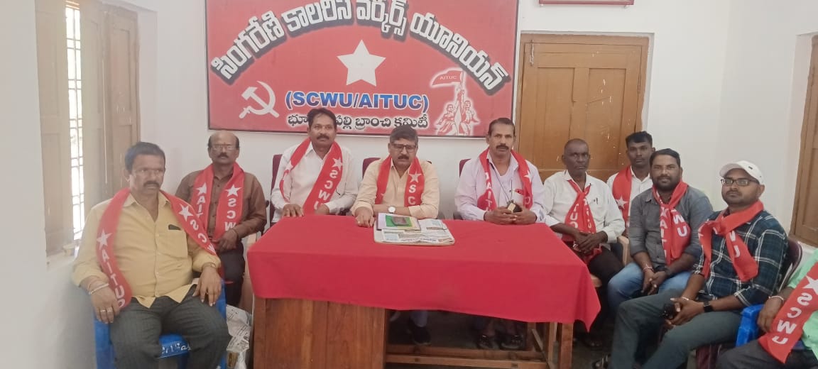కార్మికుల సొంతింటి పథకం అమలు చేస్తామని హామీ ఇచ్చి దానికి కమిటీ వేసి కూడా ఇప్పటివరకు అమలు చేయలేదని అన్నారు. కోల్ ఇండియా మాదిరిగానే పెరిక్స్ పై ఇన్కమ్ టాక్స్ యాజమాన్యం చెల్లించాలని కోరడం జరిగిందన్నారు. ప్రస్తుతం సింగరేణిలో మెడికల్ బోర్డు సమస్య తీవ్రంగా ఉందని 9 నెలలుగా మెడికల్ బోర్డు నిర్వహించడంలో యాజమాన్యం విఫలమైందన్నారు. సింగరేణి కాలరీస్ వర్కర్స్ యూనియన్ ఆధ్వర్యంలో ఈనెల 6న అన్ని డిపార్ట్మెంట్లలో మెమోరండాలు నిరసన, ధర్నా వివిధ రూపాల్లో కార్యక్రమాలు నిర్వహించడం జరుగుతుందన్నారు. అదేవిధంగా 8న జిఎం కార్యాలయాల ముందు పెద్ద ఎత్తున ధర్నా కార్యక్రమం నిర్వహించబోతున్నామని తెలిపారు. కార్మిక సమస్యల పరిష్కారం కోసం అన్ని సంఘాలను కలుపుకొని దశలవారీగా పోరాటాలు ఉధృతం చేస్తామన్నారు. 8 తర్వాత ముఖ్యమంత్రి రేవంత్ రెడ్డి డిప్యూటీ సీఎం మల్లు భట్టి విక్రమార్కను కలవడం జరుగుతుందని సమస్యలను వారికి వివరించి పరిష్కరించకుంటే కార్మిక సంఘాలు ఐక్యంగా ఏర్పాటు చేసి సమ్మెకు పిలుపు నివ్వటం జరుగుతుందని ఆయన తెలిపారు. ఈ నెల 6, 8న జరిగే ధర్నా, నిరసనలను కార్మికులు అధిక సంఖ్యలో పాల్గొని విజయవంతం చేయాలని పిలుపునిచ్చారు. ఈ సమావేశంలో బ్రాంచ్ కార్యదర్శి మోటపలుకుల రమేష్, బ్రాంచి సహాయ కార్యదర్శి గురుజపల్లి సుధాకర్ రెడ్డి, బ్రాంచ్ కమిటీ నాయకులు నూకల చంద్రమౌళి, సిపిఐ పట్టణ కార్యదర్శి ప్రవీణ్ కుమార్, ఏఐటీయూసీ జిల్లా ప్రధాన కార్యదర్శి సతీష్, లతో పాటు నాయకులు పాల్గొన్నారు.