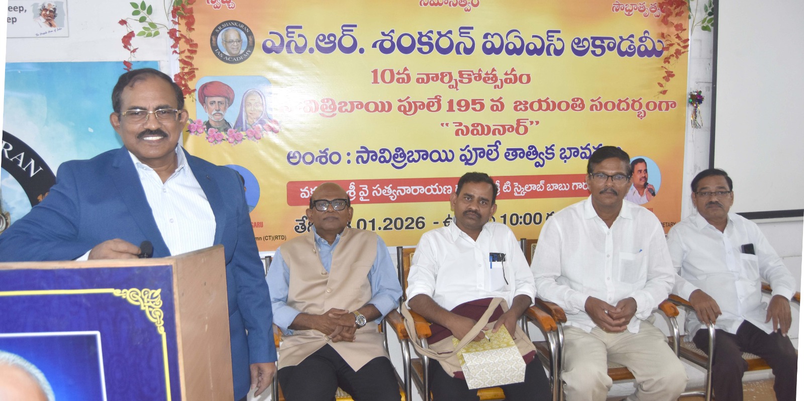 నవతెలంగాణ-హైదరాబాద్ : ఎస్.ఆర్.శంకరన్ ఐఏఎస్ అకాడమీలో మహాత్మ సావిత్రిబాయి పూలే 195వ జయంతి అలాగే అకాడమీ పదవ వార్షికోత్సవాన్ని పురస్కరించుకొని మహాత్మ సావిత్రిబాయి పూలే తాత్విక భావనలు అన్న అంశం పైన సెమినార్ నిర్వహించారు. ఈ కార్యక్రమం ఎస్. ఆర్. శంకరన్ ఐఏఎస్ అకాడమీ ప్రిన్సిపల్ కే. సురేందర్ రెడ్డి అధ్యక్షతన జరుగగా, అడ్మినిస్ట్రేటివ్ ఆఫీసర్ కే సతీష్ కుమార్ ఆహ్వానం పలికారు.
