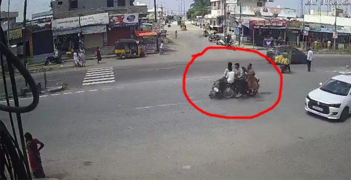 నవతెలంగాణ-హైదరాబాద్ : కరీంనగర్ జిల్లా నుస్తులాపూర్ స్టేజ్ వద్ద ఘోర రోడ్డు ప్రమాదం జరిగింది. రోడ్డు క్రాస్ చేస్తున్న సమయంలో రెండు బైక్లు ఒకదానికొకటి ఢీకొన్నాయి. ఈ ప్రమాద దృశ్యాలు సీసీటీవీ కెమెరాల్లో రికార్డ్ అయ్యాయి. ఈ ఘటనలో ఇద్దరు వ్యక్తులు తీవ్రంగా గాయపడినట్లు సమాచారం. ప్రమాదానికి గల కారణాలపై పోలీసులు దర్యాప్తు చేస్తున్నారు. స్థానికులు వెంటనే స్పందించి సహాయక చర్యలు చేపట్టారు.