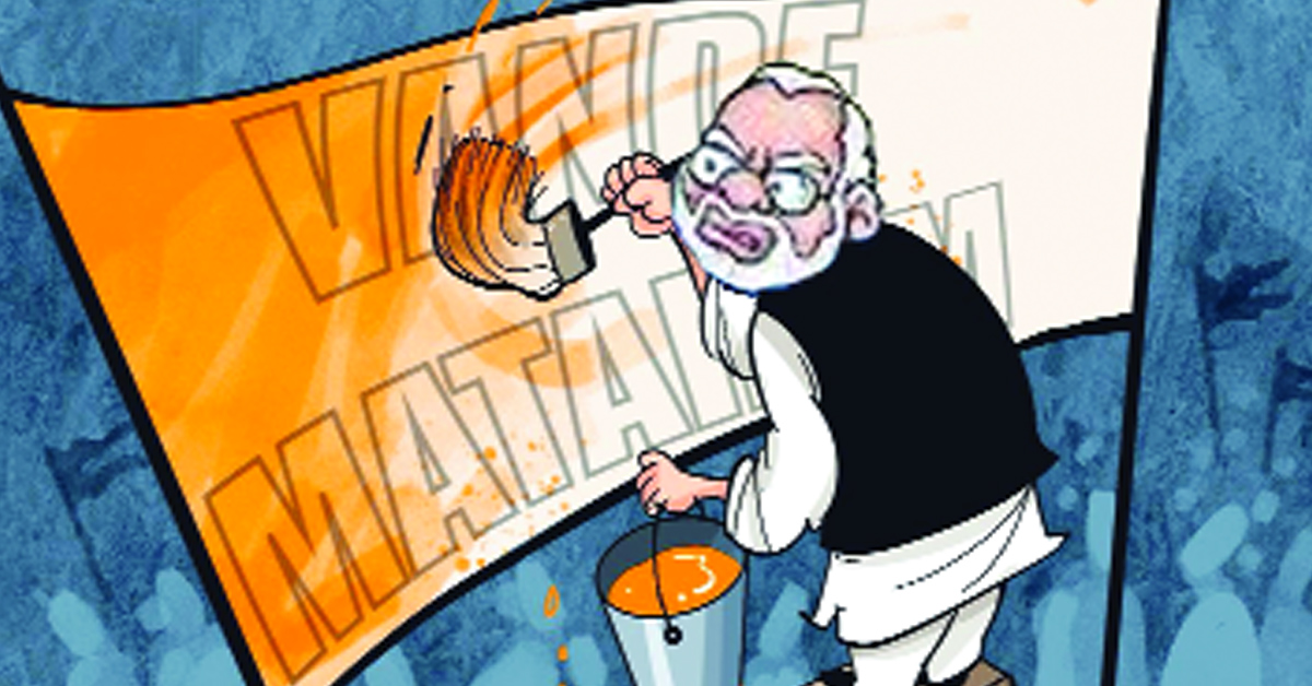 లేకపోగా దానికి వ్యతిరేకంగా కూడా ప్రచారం చేశారు. ఇంతెందుకూ 1925లో ఏర్పడిన ఆరెస్సెస్, జనసంఘ్ వారు ఆ పాటను యాభైయేండ్లవరకూ పాడలేదు. దేశ చిహ్నమైన మూడు రంగుల జెండానూ ఎగురవేయలేదు. అట్లాంటిది ఆ పాటపై ఇప్పుడెందుకంత ప్రేమ పుట్టుకొచ్చింది! అది బెంగాల్లో జరిగే ఎన్నికలపై ప్రేమ. స్వాతంత్య్రానికి ముందు బెంగాల్లో ముస్లింలీగ్తో జతకట్టి, నాటి జనసంఘ్ నేత శ్యామ్ప్రసాద్ ముఖర్జీ ప్రభుత్వాన్ని ఏర్పాటు చేశారు. ఇతను ఆర్థికమంత్రిగా ఉండి, బ్రిటీష్కు వ్యతిరేకంగా చేసిన స్వతంత్ర పోరాటం విఫలమయిందనీ బ్రిటీషర్స్కు అనుకూలంగా వారికి లేఖ కూడా రాశారు. ఇదీ వారి చరిత్ర. వీరికి వందేమాతరం పేరెత్తడానికి అర్హత ఎక్కడిది చెప్పండి!