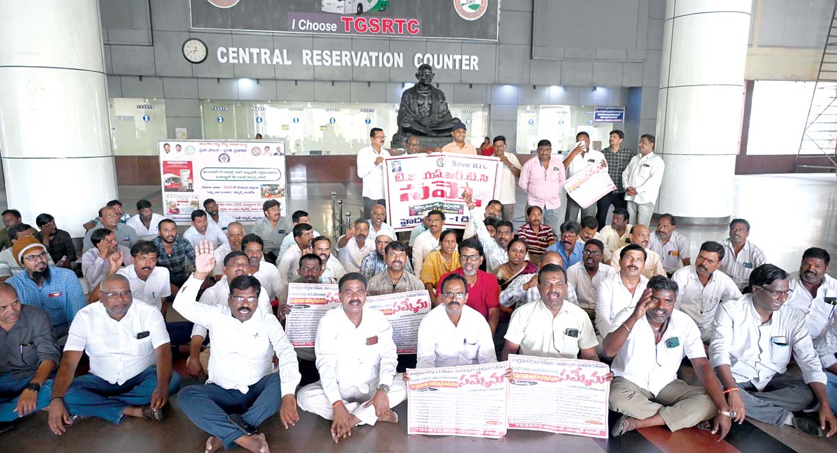 సమస్యల పరిష్కారం, డిమాండ్ల సాధన కోసం తెలంగాణ ఆర్టీసీ జేఏసీ, ఇతర సంఘాలు చేపట్టిన సమ్మె రెండో రోజూ కొనసాగింది. సర్కారు వైఖరి నేపథ్యంలో కార్మికులు విధులకు గైర్హాజరు కావడంతో బస్సులు డిపోలకే పరిమితమయ్యాయి. వరంగల్‌లో ఆర్టీసీ డ్రైవర్‌ ఆత్మహత్యాయత్నంతో రాష్ట్రవ్యాప్తంగా ఉద్రిక్తత ఏర్పడింది. ఆయన్ను చికిత్స నిమిత్తం హైదరాబాద్‌ కంచన్‌బాగ్‌లోని అపోలో ఆస్పత్రికి తరలించారు. హైదరాబాద్‌లో ప్రధాన బస్‌స్టేషన్లు, ఎంజీబీఎస్‌, జేబీఎస్‌ నుంచి ఆర్టీసీ బస్సులు రోడ్డెక్కలేదు. కార్మికులు సమ్మె చేస్తున్న విషయం తెలియక కొందరు ప్రయాణికులు బస్టాండ్లకు వచ్చి గంటల తరబడి వేచి చూస్తున్నారు. బస్సులు రాకపోవడంతో చివరికి ప్రయివేటు బస్సులను ఆశ్రయిస్తున్నారు. ఎంజీబీఎస్‌ నుంచి ఆంధ్రప్రదేశ్‌, కర్నాటక, మహారాష్ట్రకు చెందిన బస్సులు నడుస్తున్నాయి. ప్రత్యామ్నాయ ఏర్పాట్లు చేయడంలో ప్రభుత్వం విఫలమవడంతో ఆటోలు, క్యాబ్‌లను ఆశ్రయిస్తున్నారు. ప్రయివేటు వాహనదారులు చార్జీలు పెంచడంతో ప్రభుత్వ, ప్రయివేటు ఉద్యోగులు, విద్యార్థులు, దినసరి కూలీలు ఇబ్బందులు ఎదుర్కొంటున్నారు. మరోవైపు డిమాండ్లపై హామీ ఇచ్చేవరకు సమ్మె కొనసాగిస్తామని కార్మికులు ప్రకటించారు. జిల్లాల్లో ఆర్టీసీ డిపోల మధ్య పోలీసు బందోబస్తు ఏర్పాటు చేశారు. ఇదిలా ఉండగా సమస్యలు పరిష్కారమయ్యే వరకు సమ్మెను విరమించేది లేదని ఆర్టీసీ జేఏసీ, ఎస్‌డబ్ల్యూఎఫ్‌ ఇతర సంఘాలు ప్రత్యేక కార్యాచరణను ప్రకటించాయి. ఇకపోతే రాష్ట్రవ్యాప్తంగా గురువారం 40శాతం బస్సులు రోడ్డెక్కినట్టు ఆర్టీసీ యాజమాన్యం ప్రకటించింది. హైదరాబాద్‌తోపాటు అవసరమైన అన్నీ రీజియన్లల్లో తాత్కాలిక ప్రాతిపదిక డ్రైవర్లు, కండక్టర్లను నియామకానికి రీజినల్‌ మేనేజర్లకు అధికారాలను ఇచ్చింది. ఈ మేరకు ఆర్టీసీ ఆదేశాలు ఇచ్చింది. కాగా ప్రాణాలు తీసుకుంటే సమస్య పరిష్కారం కాదని సీఎం రేవంత్‌రెడ్డి చెప్పారు. ఉప ముఖ్యమంత్రి భట్టి విక్రమార్క నేతృత్వంలో శుక్రవారం మంత్రుల ఉపసంఘం ఆర్టీసీ కార్మిక సంఘాల నేతలతో చర్చలు జరుపుతుందని ప్రకటించారు.