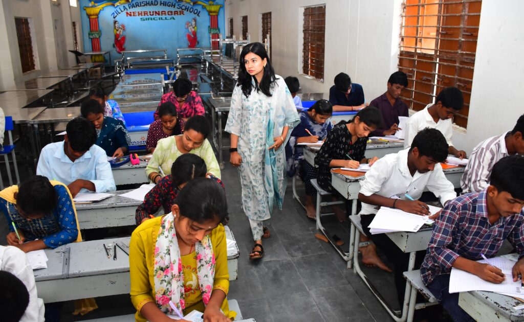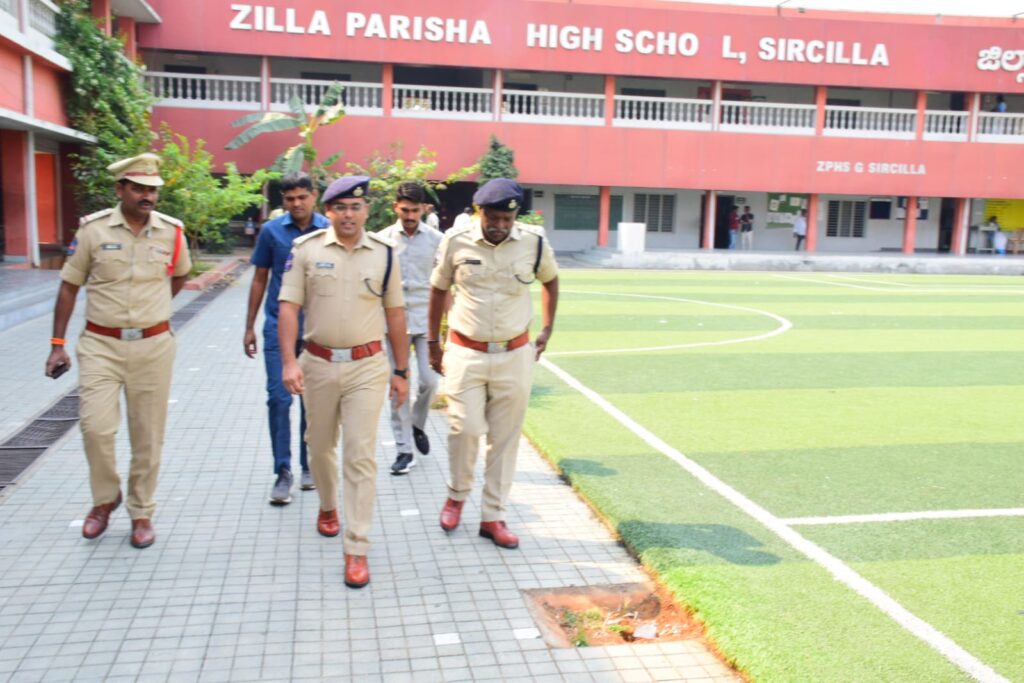 పదవ తరగతి పరీక్షల సందర్భంగా సిరిసిల్ల పట్టణ పరిధిలోని గీతనగర్ లోని జిల్లా పరిషత్ ఉన్నత పాఠశాల, కుసుమరయ్య పాఠశాలలో ఏర్పాటు చేసిన పరీక్షా కేంద్రాలన్ని జిల్లా ఎస్పీ మహేష్ బిగితే క్షేత్రస్థాయిలో పరిశీలించి,పరీక్షలు ప్రశాంత వాతావరణంలో నిర్వహించబడుతున్న తీరును సమీక్షించి,కేంద్రాల వద్ద విధుల్లో ఉన్న పోలీస్ అధికారులకు, సిబ్బందికి పలు సూచనలు చేశారు.