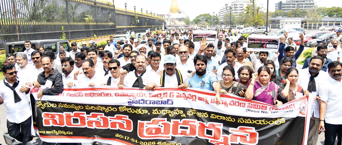 దీర్ఘకాలంగా పెండింగ్లో ఉన్న సమస్యలను వెంటనే పరిష్కరించాలనీ, డిమాండ్లను నెరవేర్చాలని తెలంగాణ ఉద్యోగ జాయింట్ యాక్షన్ కమిటీ (టీఈజేఏసీ) నాయకులు డిమాండ్ చేశారు. రాష్ట్రవ్యాప్త నిరసనల్లో భాగంగా శుక్రవారం హైదరాబాద్లోని సచివాలయంలో మధ్యాహ్న భోజన విరామ సమయంలో జేఏసీ నాయకులు, ఉద్యోగులు నల్లబ్యాడ్జీలతో నిరసన తెలిపారు. ఈ సందర్భం గా జేఏసీ చైర్మెన్ మారం జగదీశ్వర్, సెక్రెటరీ జనరల్ ఎలూరి శ్రీనివాసరావు తదితర నాయకులు మాట్లాడుతూ ప్రభుత్వ ఉద్యోగులు, గెజిటెడ్ అధికారులు, ఉపాధ్యా యులు, కార్మికులు, పెన్షనర్లు దీర్ఘకాలికంగా సమస్యలు పెండింగ్లో ఉన్నాయని గుర్తుచేశారు. 2వ పీఆర్సీ కమిటీ వేసి 30 నెలలు గడుస్తున్నా నివేదిక రాలేదనీ, వెంటనే నివేదికను తెప్పించి 51 శాతం ఫిట్మెంట్తో జూన్ 2వ తేదీలోపు 2వ పీఆర్సీని అమలు చేయాలని డిమాండ్ చేశారు. రాష్ట్రవ్యాప్తంగా పెండింగ్లో ఉన్న సుమారు రూ.13 వేల కోట్ల బకాయిలను వెంటనే విడుదల చేయాలనీ, నెలవారీ జీతాలు, ఆర్థిక నిధులు ఉద్యోగులు, పెన్షనర్ల అవసరాలకు సరిపోవడం లేదని మండిపడ్డారు. కొత్త ఈహెచ్ఎస్ విధానాన్ని వెంటనే అమల్లోకి తీసుకురావాలని, ఉద్యోగులు, పెన్షనర్ ఆరోగ్య భద్రత కోసం నగదు రహిత చికిత్సను తక్షణమే అందుబాటులోకి తేవాలని డిమాండ్ చేశారు. ప్రస్తుతం ఉన్న కాంట్రిబ్యూటరీ పెన్షన్ స్కీమ్ (సీపీఎస్)ను రద్దు చేసి, పాత పెన్షన్ విధానాన్ని (ఓపీఎస్) పునరుద్ధరించాలని కోరారు.