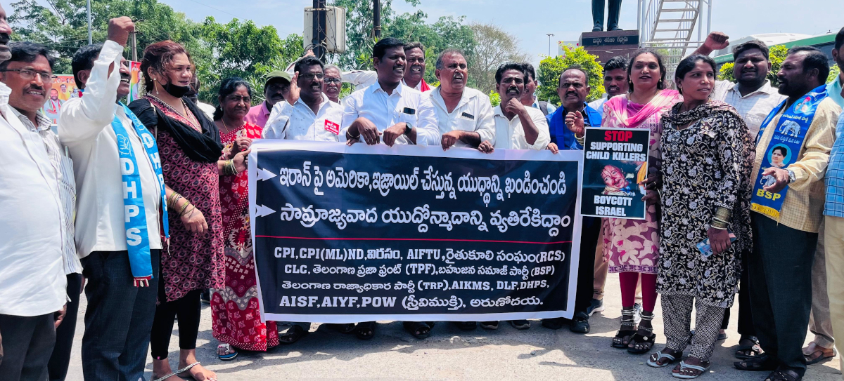 సామ్రాజ్యవాద అమెరికా, ఇజ్రాయిల్ మతోన్మాదాన్ని తీవ్రంగా ఖండించాలని విరసం పెద్దపల్లి జిల్లా కన్వీనర్ బాసాని రాజయ్య మంగళవారం అన్నారు. ఈ సందర్భంగా మాట్లాడారు ఇరాన్ పై అమెరికా, ఇజ్రాయల్ యుద్దాన్ని నిరసిస్తూ కార్యక్రమాంని మిర్వహచడం జరిగిందని తెలిపారు. ఈ కార్యక్రమంలో పౌరహక్కుల సంఘం రాష్ట్ర సహాయ కార్యదర్శి మాదన కుమారస్వామి, రైతుకూలీ సంఘం రాష్ట్ర ప్రధాన కార్యదర్శి వెల్తురు సదానందం, ఏఐఏప్ టియు రాష్ట్ర వర్కింగ్ ప్రెసిడెంట్ టి.రత్నకుమార్, సిపిఐఐ జిల్లా కార్యదర్శి తాంద్ర సదానందం, డిఎల్పీ రాష్ట్ర కార్యదర్శి మార్వడి సుదర్శన్ మాట్లాడుతూ.. పచ్చిమ ఆసియా ప్రాంతంలో యుద్ధ వాతావరణాన్ని సృష్టిస్తూ నిరపరాధ ప్రజలపై దాడులు జరిపే అమెరికా–ఇజ్రాయిల్ కూటమి చర్యలు మానవత్వానికి విఘాతం అన్నారు. ఈ యుద్ధాలు సామ్రాజ్యవాద ప్రయోజనాల కోసం మాత్రమే నడపబడుతున్నాయన్నారు.