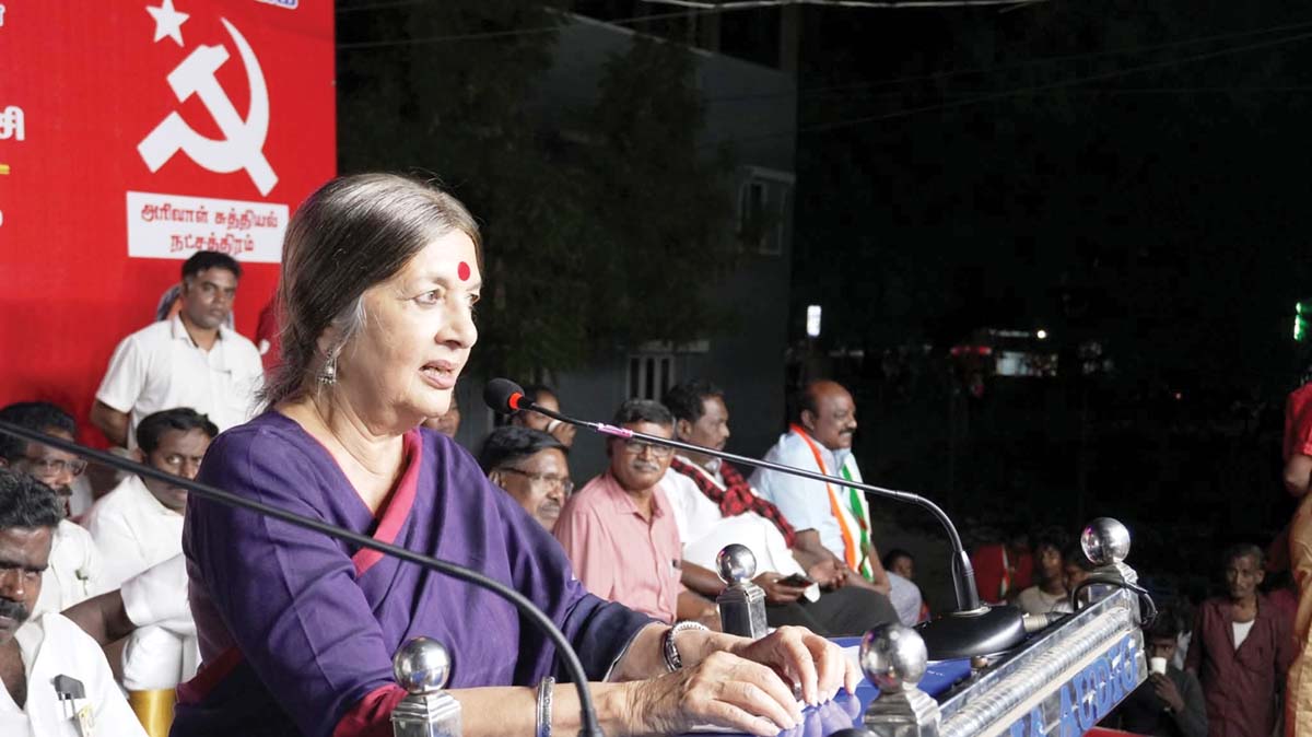 కరంబక్కుడి : తమిళనాడులో ప్రవేశించటా నికి ఈపీఎస్ భుజాలపై స్వారీ చేస్తూ బీజేపీ కుట్రలు చేస్తోందని, అలాంటి కుయుక్తులను తిప్పికొట్టాలని సీపీఐ(ఎం) అగ్ర నాయకురాలు బృందాకరత్ పిలుపునిచ్చారు. మనాలి బస్ టెర్మినల్ సమీపంలోనూ, కరంబక్కుడిలో ‘సెక్యులర్ ప్రోగ్రెసివ్ అలయన్స్’ ఆధ్వర్యంలో జరిగిన బహిరంగ సభలను ఉద్దేశించి ఆమె ప్రసంగించారు. తమిళనాడు ఓటర్లు బీజేపీకి తగిన గుణపాఠం నేర్పుతారని అన్నారు.