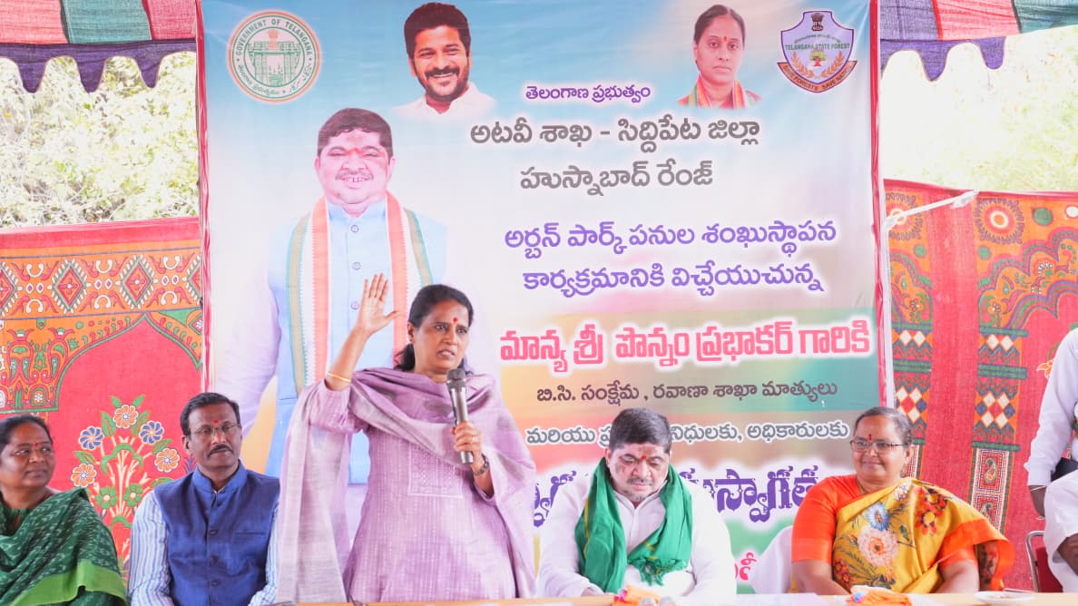 అర్బన్ ఫారెస్ట్ రెండు సంవత్సరాల్లో పూర్తి చేసే విధంగా ప్రణాళికలు సిద్ధం చేసినట్లు పిసిసిఎఫ్ సువర్ణ అన్నారు. శనివారం హుస్నాబాద్ మండలంలోని జిల్లాల గడ్డ గ్రామంలో అర్బన్ ఫారెస్ట్ కి శంకుస్థాపన కార్యక్రమంలో మంత్రి పొన్నం ప్రభాకర్ తో కలిసి పాల్గొన్నారు. ఈ సందర్భంగా మాట్లాడారు కేంద్ర ప్రభుత్వం నుండి కూడా నిధులు వచ్చేలా ప్రతిపాదనలు పెడుతున్నామన్నారు.అర్బన్ ఫారెస్ట్ కి ముఖ్యమంత్రి శంకుస్థాపన చేయాల్సి ఉండగా ఎన్నికల వల్ల ఆగిపోయిందన్నారు.అర్బన్ ఫారెస్ట్ పార్క్ హైదరాబాద్ లేదా పెద్ద పెద్ద మున్సిపాలిటీ లకు వస్తాయని అలాంటిది హుస్నాబాద్ ప్రాంతంలో ఏర్పాటు చేసుకోవడం సంతోషకరమన్నారు.జిల్లలగడ్డ ప్రజలకు హృదయపూర్వక అభినందనలు తెలిపారు.త్వరలోనే హుస్నాబాద్ అడవులకు వెళ్లాలని హైదరాబాద్ వాళ్ళు ఇక్కడకి రావాలన్నారు. ఒకసారి చూసి వెళ్ళిన వారు బయట వాళ్ళకి చెప్తే మరింత మంది ఇక్కడికి వస్తారనీ.. ఇక్కడ టూరిజం అభివృద్ధి చెందుతుందన్నారు. ఇక్కడ చరిత్ర ,పోర్టు ఉందని అడవిలో రాజుల చరిత్ర ఆనవాళ్లు ఇక్కడ ఉన్నాయన్నారు. హిస్టరీ కల్చర్ అంతా ఫారెస్ట్ లోనే దొరుకుతుందన్నారు. అర్బన్ ఫారెస్ట్ కి వాచ్ టవర్ వస్తుందన్నారు. చిల్డ్రన్ ప్లే గేమ్స్ ఆడుకోవడానికి వస్తారన్నారు. జిల్లలగడ్డ వారికి ఉపాధి అవకాశాలు పెరుగుతాయనీ, ఇక్కడ టూరిజం అభివృద్ధి చెందుతుందని అన్నారు .హుస్నాబాద్ ప్రాంతం మరింత అభివృద్ధి జరుగుతుందని తెలిపారు.