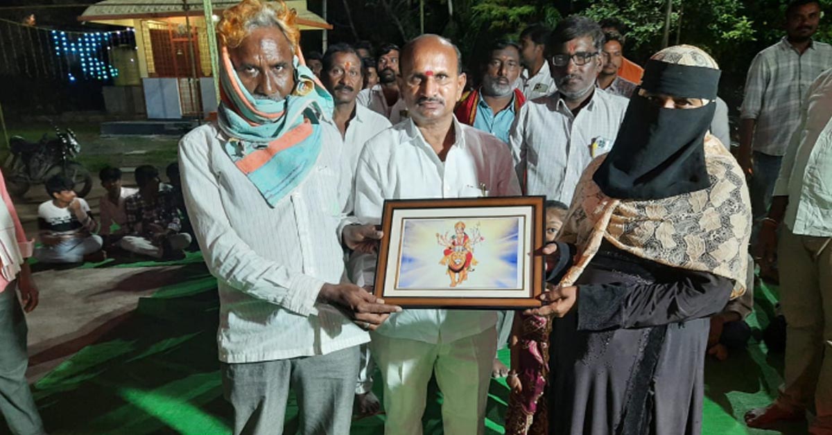 మండల కేంద్రంలో శరన్నవరాత్రి ఉత్సవాలు భాగంగా కొనసాగుతున్న ప్రత్యేక పూజలు ముస్లిం దంపతులు పాల్గొని మత సామరస్యాన్ని  చాటుకున్నారు ప్రత్యేక పూజలు పాల్గొన్న ముస్లిం మహిళా దంపతులకు కాంగ్రెస్ పార్టీ సీనియర్ నాయకులు హనుమాన్లు స్వామి దుర్గామాత ఫోటో బహుకరించారు శరన్నవరాత్రి ఉత్సవాల్లో ముస్లింలు పాల్గొనడం హిందువులంతా ఆ దంపతులకు ప్రత్యేకంగా అభినందించారు