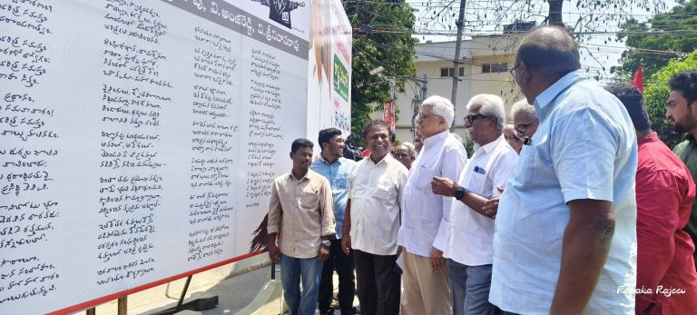 నవతెలంగాణ – విజయవాడ : విజయవాడ మాకినేని బసవ పున్నయ్య విజ్ఞాన కేంద్రంలో సీపీఐ(ఎం) ఆధ్వర్యంలో శుక్రవారం ‘యుద్ధ వ్యతిరేక’ సదస్సును నిర్వహించారు. ఈ కార్యక్రమానికి ముఖ్యఅతిథిగా సీపీఐ(ఎం) పూర్వ ప్రధాన కార్యదర్శి కామ్రేడ్ ప్రకాష్ కారత్ విచ్చేశారు. ఎంబివికె ప్రాంగణంలో ఎగ్జిబిషన్ను ప్రకాష్ కారత్ ప్రారంభించారు. ‘ ఇరాన్ పై దాడి – అమెరికా , ఇజ్రాయిల్ సామ్రాజ్యవాదం దురహంకారం ‘ అంశంపై రాష్ట్ర సెమినార్ ప్రారంభమైంది. ముందుగా ప్రజా నాట్యమండలివారు గీతాలాపన చేశారు. అనంతరం సదస్సులో వక్తలు ప్రసంగిస్తున్నారు.
