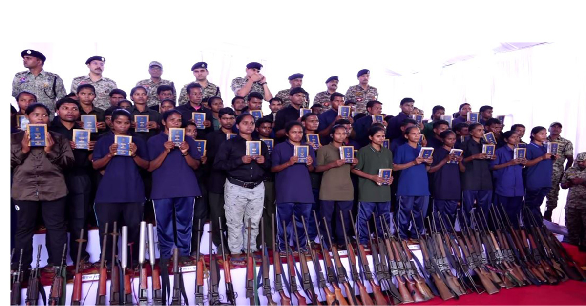 208 మంది మావోయిస్టులు శుక్రవారం జనజీవన స్రవంతిలోకి తిరిగి వచ్చి జగదల్పూర్లోని పోలీస్ లైన్స్లో జరిగిన కార్యక్రమంలో ముఖ్యమంత్రి విష్ణు దేవ్ సాయి మరియు ఉప ముఖ్యమంత్రి విజయ్ శర్మ ఎదుట తమ ఆయుధాలను అప్పగించారు. ఆయుధాల్లో 19ఎకె-47రైఫిల్స్, 17ఎస్ఎల్ఆర్ రైఫిల్స్, 23ఐఎన్ఎస్ఎఎస్ రైఫిల్స్, ఒక ఐఎన్ఎస్ఎఎస్ ఎల్ఎంజి, 36.303 రైఫిల్స్, 4 కార్బైన్లు, 11 బిజిఎల్ లాంచర్లు, 41 12బోర్/సింగిల్ షాట్, ఒక పిస్టల్ ఉన్నట్లు వెల్లడించాయి.