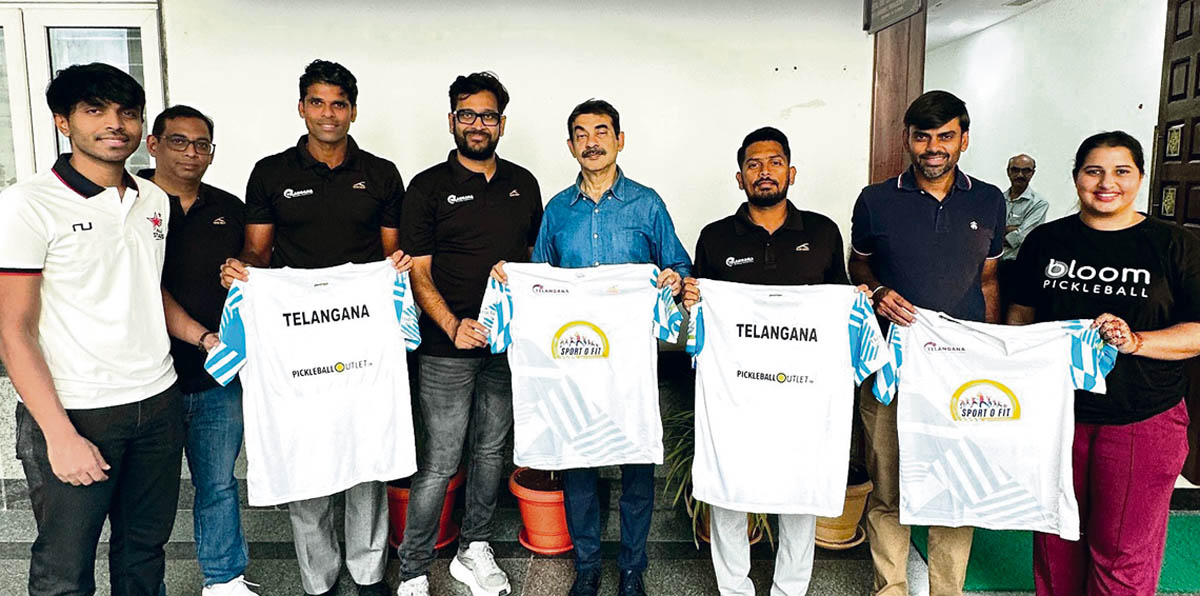 హైదరాబాద్: ఈ నెల 13 నుంచి బెంగళూర్లో జరుగనున్న జాతీయ పికిల్బాల్ చాంపియన్షిప్స్కు తెలంగాణ నుంచి 46 మంది క్రీడాకారులు ఎంపికయ్యారు. తెలంగాణ బందానికి రాష్ట్ర నం.1 ర్యాంక్ ప్యాడ్లర్ సమీర్ వర్మ సారథ్యం వహించనున్నాడు. ఈ పోటీల్లో పాల్గొనే తెలంగాణ బందం అధికారిక జెర్సీని రాష్ట్ర క్రీడాశాఖ ప్రిన్సిపల్ సెక్రటరీ జయేష్ రంజన్ సచివాలయంలోని తన కార్యాలయంలో ఆవిష్కరించారు. ఈ కార్యక్రమంలో రాష్ట్ర పికిల్బాల్ సంఘం కార్యదర్శి, ఒలింపియన్ విష్ణు వర్దన్, ఆ సంఘం ఆఫీస్బేరర్లు పాల్గొన్నారు.