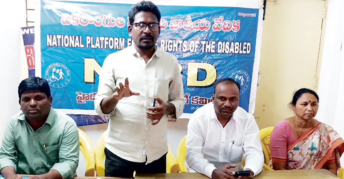 కేంద్ర, రాష్ట్ర బడ్జెట్లలో వికలాంగుల సంక్షేమనికి 5 శాతం నిధులు కేటాయించాలనీ, పెన్షన్ రూ.6,000లకు పెంచి వెంటనే అమలు చేయాలనే డిమాండ్లతో ఫిబ్రవరి 25న దేశ వ్యాప్తంగా కలెక్టర్ కార్యాలయల ముట్టడి నిర్వహి స్తున్నామని వికలాంగుల హక్కుల జాతీయ వేదిక (ఎన్పీఆర్డీ) రాష్ట్ర ప్రధానకార్యదర్శి యం.అడివయ్య తెలిపారు. ఆదివారం హైదరాబాద్లోని ఎన్పీఆర్డీ రాష్ట్ర కార్యాలయంలో ఆ వేదిక తెలంగాణ రాష్ట్ర కమిటీ సమావేశం కేంద్ర కమిటీ సభ్యులు ఆర్.వెంకటేష్ అధ్యక్షతన జరిగింది.