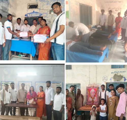 మద్నూర్ మండలంలోని దన్నూర్ మాజీ సర్పంచ్ విట్టల్ రావు ఐదవ వర్ధంతిని కుటుంబ సభ్యులు ఆదివారం ఘనంగా నిర్వహించారు. ఇందులో భాగంగా గ్రామస్తుల కోసం ఉచిత వైద్య శిబిరాన్ని ఏర్నాటు చేశారు. ఇందులో గ్రామ యువత స్వచ్చదంగా రక్తదానం చేశారు. ఈ సందర్భంగా కోడలు జయశ్రీ దేవి దాస్ పటేల్, గ్రామ సర్పంచ్ మాట్లాడుతూ.. మామయ్యను మేమెప్పటికీ మరువలేమని, ఆయన మా గుండోల్లో ఉంటారి అన్నారు. సెవెన్ హిల్స్ బాన్సువాడ ఆస్పత్రి వైద్యుల చేత ఉచిత వైద్య శిబిరం ఏర్పాటు చేసి గ్రామస్తులకు వైద్య చికిత్సలు జరిపించామని తెలిపారు. ఉచిత వైద్య శిబిరంలో వైద్యురాలు వాగ్దేవి ఎండి జనరల్ మెడిసిన్, అదేవిధంగా డాక్టర్ దివ్య భవాని గైనిక్ ఫార్మసిస్ట్, సుమంత్ వీరితో పాటు వైద్య సిబ్బంది వైష్ణవి, నర్సుబాయి, కార్తీక్ హనుమంత్, అన్వర్ ఉచిత రక్తదాన శిబిరంలో పాల్గొని ప్రజలకు చికిత్సలు అందించి, మెడిసిన్ ను అందజేశారు. అనంతరం సర్పంచ్ జయశ్రీ వైద్య బృందానికి శాలువాలతో ఘనంగా సన్మానించారు. కార్యక్రమంలో కాంగ్రెస్ పార్టీ జిల్లా కార్యదర్శి సంతోష్ పటేల్, విట్టల్ రావు, రెడ్ క్రాస్ మండల చైర్మన్ ప్రకాష్ విట్టల్ రావు చిత్రపటానికి పూలవేసి నివాళులర్పించారు.