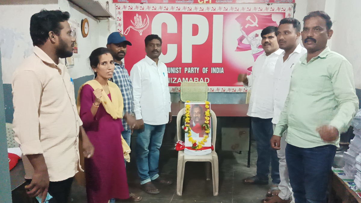 సింగరేణి కార్మికునీగా పనిచేస్తున్న తరుణంలో AITUC కార్మిక నాయకునిగా ఎదిగి 5 సార్లు శాసన సభ్యునిగా ఎన్నికై ప్రజా, కార్మిక సమస్యలపై అసెంబ్లీ లో తన వాణిని వినిపించారని ప్రజా సమస్యలపై స్పందించి అనేక ఉద్యమాలు నిర్వహించాలని నిజామాబాద్ జిల్లా ఇన్చార్జిగా ఉంటూ CPIపార్టీ అభివృద్ధికి కృషి చేశారని ఆయన కోరుకున్న సమ సమాజం కోసం ప్రతి ఒక్కరూ కృషి చేయాలని అన్నారు. ఈ కార్యక్రమంలో సిపిఐ నాయకులు పి.రంజిత్ కుమార్, సక్కి.సురేష్, అంజలి, రాధా కుమార్, కుశాల్, సుభోదు పాల్గొన్నారు.