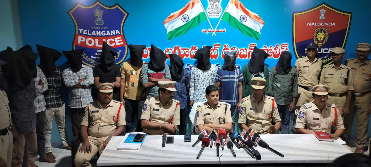 అక్రమ గంజాయి రవాణా చేస్తున్న 9 మంది అంతరాష్ట్ర గంజాయి నిందితులను అరెస్ట్ చేసినట్లు డీఎస్పీ రాజశేఖర్రాజు తెలిపారు. మంగళవారం స్థానిక డీఎస్పీ కార్యాలయంలో వివరాలు వెల్లడించారు. ఏపీ రాష్ట్రంలోని మాచర్లకు చెందిన ఇప్పటోళ్ల అమరలింగం, మిర్యాలగూడ పట్టణానికి చెందిన మహ్మమద్ జునైద్లీ, మహమ్మద్ గౌస్, షేక్ జావిద్, బొడ్డు శ్యామ్, పులిజాల లక్ష్మీనారాయణ, నాశబోయిన గణేష్, బొమ్మాజి గౌతమ్నంద, మహమ్మద్ తాజొద్దిన్లను అరెస్ట్ చేసినట్లు తెలిపారు. మంగళవారం మధ్యాహ్నం సమయంలో పోలీసులు పెట్రోలింగ్ నిర్వహిస్తుంగా ఎన్ఎస్పీ క్యాంప్ లోని కళాభారతి నిర్మానుష్య ప్రదేశంలో అనుమానస్పదంగా కొందరు వ్యక్తులు ఉండగా పోలీసులను చూసి పారిపోతుండగా పట్టుకోని విచారించగా గంజాయి కలిగి ఉండి క్రయవిక్రయాలు చేస్తున్నట్లు తేలిందని చెప్పారు. వీరి వద్ద 1.1కిలోల ఎండు గంజాయి ప్యాకెట్లు, నాలుగు మొబైల్ ఫోన్లు, రూ.940 నగదును స్వాదీనం చేసుకున్నట్లు తెలిపారు. కార్యక్రమంలో సీఐలు నాగభూషణం, సోమనర్సయ్య, ఎస్ఐలు రాంబాబు, సైదిరెడ్డిలు ఉన్నారు.