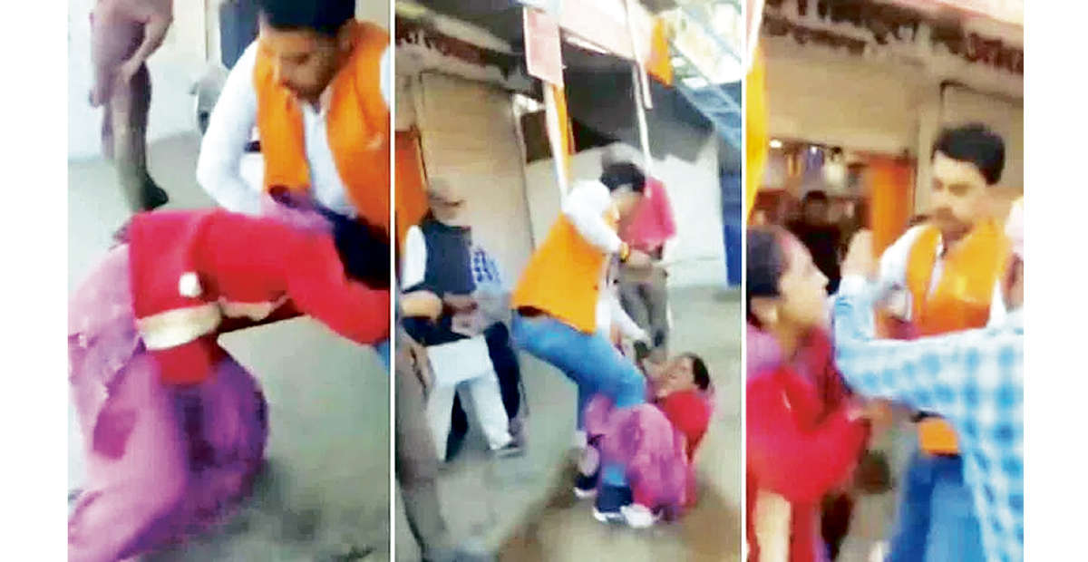ఓ మహిళపై బీజేపీ నేత దాడి