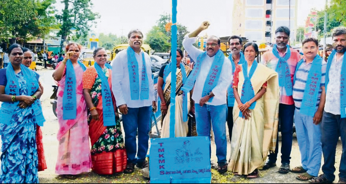 మత్స్యకారుల సంక్షేమం కోసం రూ.5వేల కోట్ల బడ్జెట్ కేటాయించాలని తెలంగాణ మత్స్యకారులు మత్స్యకార్మిక సంఘం రాష్ట్ర అధ్యక్షులు గోరెంకల నర్సింహ్మ ప్రభుత్వాన్ని డిమాండ్ చేశారు. తెలంగాణ మత్స్యకారులు మత్స్యకార్మిక సంఘం 25వ ఆవిర్భావ దినోత్సవం సందర్భంగా మంగళవారం రంగారెడ్డి జిల్లా వనస్థలిపురం రైతుబజార్ చేపల మార్కెట్ వద్ద సంఘం జెండాను ఆయన ఆవిష్కరించి మాట్లాడారు. అక్టోబర్ 23న సంఘం సిల్వర్ జూబ్లీ ఉత్సవాలను హైదరాబాద్లోని సుందరయ్య విజ్ఞాన కేంద్రంలో నిర్వహిస్తామని తెలిపారు. తెలంగాణ ఏర్పడ్డాక, ఉమ్మడి రాష్ట్రంలో మత్స్యకారుల సమస్యలపై సంఘం అనేక రాజీలేని పోరాటాలు నిర్వహించి ఎన్నో విజయాలు సాధించిందని గుర్తు చేశారు. ఇంకా ఎన్నో సమస్యలు ఉన్నాయని, వాటిని పోరాడి సాధించుకోవాల్సిన అవసరం ఉందని చెప్పారు. రాష్ట్రంలో 8 లక్షల కుటుంబాలు, దేశంలో 3 కోట్ల కుటుంబాలు మత్స్య వృత్తిపై ప్రత్యక్షంగా ఆధారపడి జీవిస్తున్నాయని తెలిపారు.మత్స్యకారుల అభివృద్ధికి నిధుల కేటాయింపు, వృత్తి రక్షణ, ఉపాధి కల్పనకు చర్యలు తీసుకోవడంలో కేంద్ర, రాష్ట్ర ప్రభుత్వాలు నిర్లక్ష్యం వహిస్తున్నాయని ఆగ్రహం వ్యక్తం చేశారు. ప్రతి మత్స్య సొసైటీ బ్యాంకు అకౌంట్లో ప్రభుత్వం రూ.10 లక్షలు జమ చేయాలని డిమాండ్ చేశారు. పట్టణీకరణ, పారిశ్రామీకరణ వల్ల జలవనరులు, చెరువులు, కుంటలు కబ్జాలు, కాలుష్యానికి గురవుతున్నాయని, ఫలితంగా మత్స్యకారులు వృత్తికి, ఉపాధికి దూరమవుతున్నారని ఆందోళన వ్యక్తం చేశారు. పనుల కోసం ఇతర ప్రాంతాలకు వలసలు వెళ్లి దుర్భరమైన జీవితాన్ని గడుపుతున్నారన్నారు. ఇప్పటివరకు సాధించిన విజయాలను స్ఫూర్తిగా తీసుకొని.. మత్స్యకారుల సమస్యల పరిష్కారం కోసం మరిన్ని పోరాటాలు చేసి పాలకులపై ఒత్తిడి తీసుకొచ్చేందుకు ఈ ఆవిర్భావ దినోత్సవం సందర్భంగా కార్యాచరణతో ముందుకెళ్లాలని అన్నారు. ఈ కార్యక్రమంలో నాయకులు సౌళ్ల లలిత, తడబోయన కృష్ణమూర్తి, పర్రె చంద్రయ్య, పర్రె సునీత, చెక్క కుమారి, చెక్క కృష్ణమూర్తి, అంకర్ల గంగ, కొనింటి లక్ష్మి తదితరులు పాల్గొన్నారు.