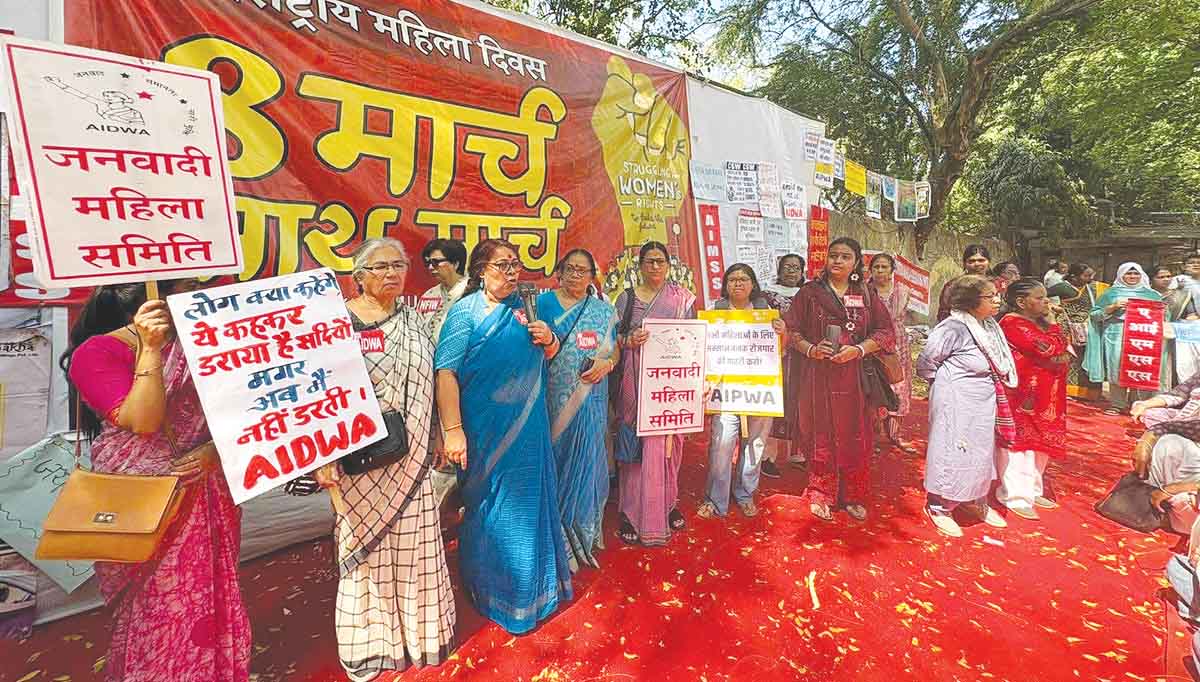 గ్యాస్ సిలిండర్ల ధరల పెంపును ఉపసంహరించుకోవాలని ఐద్వా అఖిల భారత అధ్యక్ష, ప్రధాన కార్యదర్శులు పీకే శ్రీమతి టీచర్, కనినికా ఘోష్ డిమాండ్ చేశారు. అంతర్జాతీయ మహిళా దినోత్సవం సందర్భంగా ఆదివారం నాడిక్కడ జంతర్ మంతర్ వద్ద ఐద్వా ఆధ్వర్యంలో ఆందోళన నిర్వహించారు. ఈ సందర్భంగా పీకే శ్రీమతి టీచర్, కనినికా ఘోష్ మాట్లాడుతూ దేశంలోని ప్రతీ మహిళకు మహిళా దినోత్సవ శుభాకాంక్షలు తెలియజేశారు. అంతర్జాతీయ మహిళా దినోత్సవం సాధికారతను సమర్థించే రోజని, అయితే దేశంలోని వంటగదుల్లో వాస్తవికత వేరే కథను చెబుతోందని అన్నారు. ఉపశమనం కలిగించే బదులు, గ్యాస్ ధరలను 60 శాతం పెంచి దేశంలోని మహిళలకు అణిచివేత, ఆర్థిక భారం రూపంలో ‘బహుమతి’ ఇచ్చారని విమర్శించారు. ఉజ్వల వంటి సంక్షేమ పథకాల విజయాన్ని కేంద్రం ప్రచారం చేస్తున్నప్పటికీ, ధరల పెంపు ఆ పేద లబ్దిదారులనూ వదిలిపెట్టదని అన్నారు. సబ్సిడీ లేని ఎల్పీజీ ఒకే ఏడాదిలో రూ. 110 పెరిగిందని, ఈ వారం వాణిజ్య సిలిండర్ ధర రూ.114.50 పెరిగిందని తెలిపారు. ఈ ‘ఇంధన ఆధారిత ద్రవ్యోల్బణం’ రెండు వైపులా పదును గల కత్తి లాంటిదని విమర్శించారు. ఇది ఇంట్లో వండిన ఆహార పదార్థాల ధరను పెంచుతూ, ఇప్పటికే తగ్గిపోతున్న వాస్తవ ఆదాయాలతో కుంగిపోతున్న మధ్యతరగతి, శ్రామిక ప్రజలకు అవసరమైన వస్తువుల ధరలను పెంచుతుందన్నారు. ఈ అస్థిరతకు మూలం.. పెరుగుతున్న పశ్చిమాసియా వివాదంలో ఉందని, బ్రెంట్ ముడిచమురు ఒకేవారంలో దాదాపు 27శాతం పెరగడం, ఎల్ఎన్జీ సరఫరా అంతరాయం ఎదుర్కొంటున్నందున, ఇండియా ఇంధన భద్రత ముట్టడిలో ఉందన్నారు. అయితే, ఈ సంక్షోభం పాశ్చాత్య ఆధిపత్యానికి ‘లొంగిపోవడాన్ని’ ప్రతిబింబిస్తుందని విమర్శించారు. మోడీ ప్రభుత్వం ప్రజల ప్రయోజనాలను విస్మరిస్తూ ప్రపంచ ఆధిపత్య ప్రయోజనాలకు సేవ చేస్తోందని ధ్వజమెత్తారు.