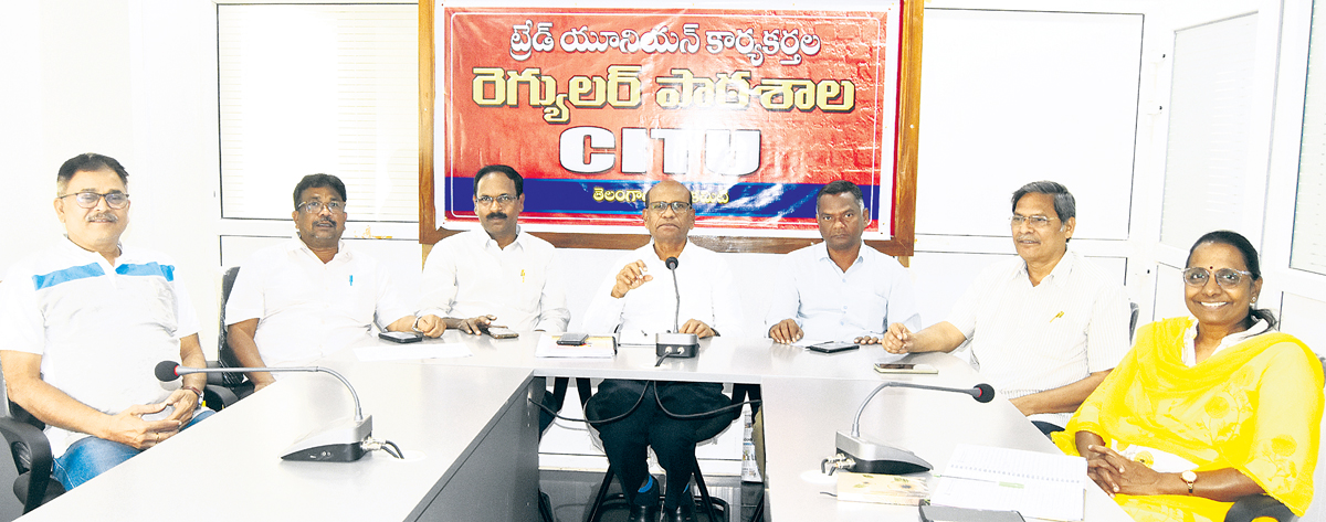 ఎరువుల మీద సబ్సిడీలు తగ్గించి ధరలు పెంచుతున్న తీరును ఎండగట్టారు. విత్తన చట్టంతో రైతులు విత్తనాలపై హక్కులను కోల్పోతారని తెలిపారు. విద్యుత్ చట్టం 2025 ద్వారా స్మార్ట్ మీటర్లు అమల్లోకి వస్తాయనీ, వ్యవసాయానికి ఉచిత విద్యుత్ పోతుందని తెలిపారు. గ్రామీణ పేదలకు ఉపాధి కల్పించే మహాత్మా గాంధీ గ్రామీణ ఉపాధి హామీ చట్టం-2005ను రద్దుచేసి, పేదలకు ఉపాధి లేకుండా చేసే వీబీజీఆర్ఏఎంజీ చట్టాన్ని తీసుకొచ్చి కేంద్రం ఇచ్చే 90 శాతం నిధులను 60 శాతానికి తగ్గించడం దారుణమన్నారు. బడ్జెట్లో అవసరం మేరకు నిధులు కేటాయించకుండా 125 రోజల పని కల్పన ఎలా సాధ్యమని ప్రశ్నించారు. మోడీ ప్రభుత్వం అనుసరిస్తున్న ఈ విధానాలకు నిరసనగా గ్రామ గ్రామాన నరేంద్ర మోడీ, అమెరికా అధ్యక్షులు ట్రంప్ దిష్టిబొమ్మలు దహనం చేయాలనీ, లేబర్ కోడ్లు రద్దు చేయాలని కోరుతూ కార్మికవర్గం నిర్వహించే దేశవ్యాప్త సమ్మెలో గ్రామ, గ్రామాన నిరసన ప్రదర్శనలు, ధర్నాలు, రాస్తారోకోలు నిర్వహించాలని పిలుపునిచ్చారు. కార్యక్రమంలో సీఐటీయూ రాష్ట్ర ఉపాధ్యక్షులు ఎస్.వీరయ్య, వీఎస్రావు, పద్మశ్రీ, తదితరులు పాల్గొన్నారు.