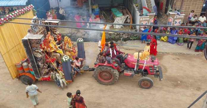 ఈ శోభయాత్రలో దీక్ష స్వాములు మహిళల మంగళహారతులతో డిజే సప్పుడుల మధ్య ఆధ్యాత్మిక చింతన ఉట్టి పడేల దీక్ష స్వాములు మహిళలు నృత్యాలు, కోలాటాల మధ్య శోభయాత్రగా వెళ్ళి గ్రామసమీపంలోని చేరుల్లో నిమర్జనం చేశారు.
