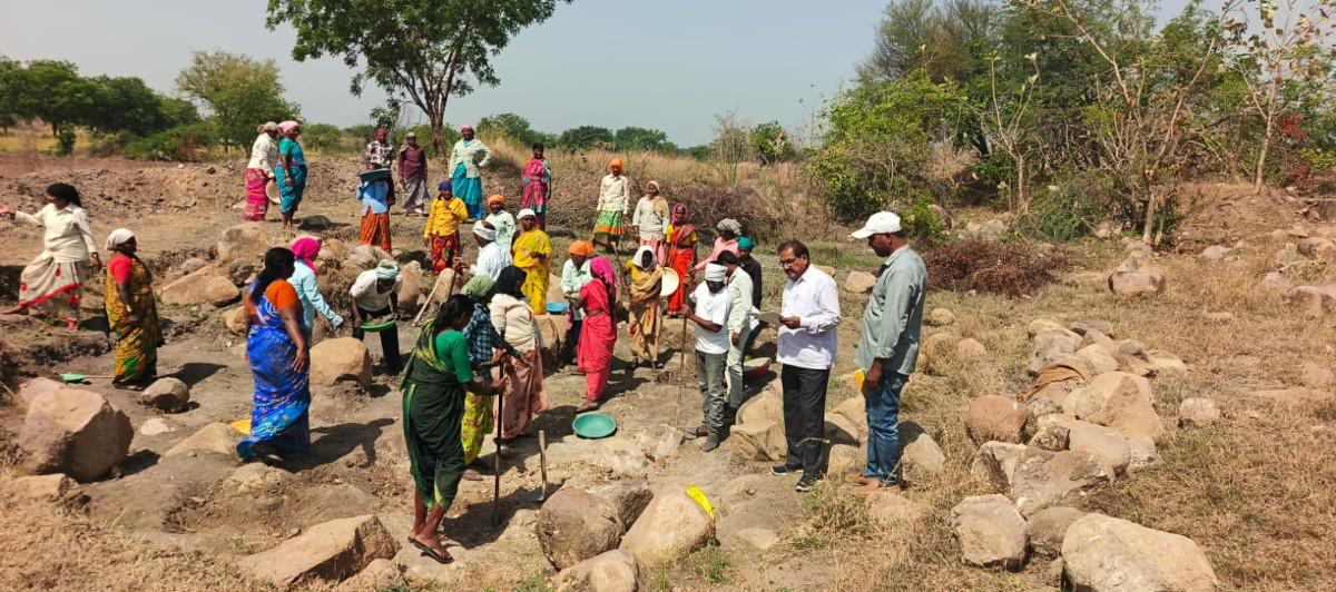 ఉపాధి హామీ పథకంలో భాగంగా నిర్మిస్తున్న ఫామ్ పాండ్ ను జుక్కల్ ఎంపీడీవో శ్రీనివాస్, ఉపాధి హామీ ఈసీ స్వామి దాస్ శుక్రవారం సందర్శించారు. ఈ సందర్భంగా వారు మాట్లాడుతూ.. వర్షపు నీరు వృధాగా పోవొద్దనే ముఖ్య ఉద్ధేశ్యంతో ఈ నిర్మాణాలను చేపడుతున్నామన్నారు. దీని వలన భూగర్భ జలాలు అడుగంటుకు పోకుండా ఉంటాయని తెలిపారు. బోరుబావులు ఎండిపోకుండా ఉండేందుకు ఇది సహకరిస్తునందన్నారు. అంతకుముందు  ఉపాధి హామీ కూలీలకు పలు సూచనలు చేశారు. ఉదయం పూట 6 గంటలకు పనులకు హజరు కావాలని తెలిపారు. 11 గంటల లోపు ఉపాది పనులు ముగించుకొని ఇండ్లకు వెళ్లాలని సూచించారు. పెరిగిన ఎండల దృష్ట్యా తగు జాగ్రత్తలు పాటించాలని సూచించారు. ఈ కార్యక్రమంలో ఎంపీడీవో తో పాటు ఈసీ, తదితరులు పాల్గొన్నారు.