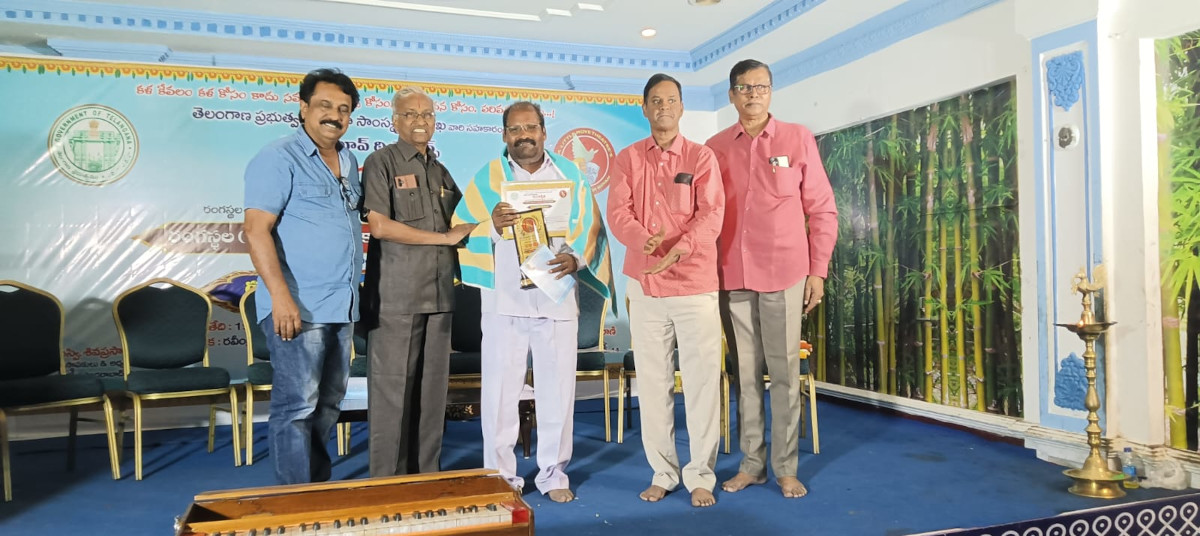 గ్రామీణ ప్రాంతాలలో ఉన్న కళారంగానే తన పాటల ద్వారా ప్రజలను చైతన్యం చేస్తూ రంగస్థలంలో తనకంటూ ముద్ర వేసుకున్నారని రంగస్థలం రాష్ట్ర అధ్యక్షులు శివప్రసాద్ అన్నారు. మండలంలోని వాడ్యాల్ గ్రామానికి చెందిన అనగళ్ళ బిక్షపతినీ గురువారం హైదరాబాదులోనీ రవీంద్రభారతిలో శివప్రసాద్  చేతుల మీదుగా సన్మానం అందుకున్నట్లు అని చెప్పారు. కళాకారులను ప్రభుత్వము ఆదుకోవాలని కోరారు. కళాకారులు నైపుణ్యం ద్వారా ప్రజలను చైతన్య చేయడమే కళాకారుల యొక్క లక్ష్యమని చెప్పారు.