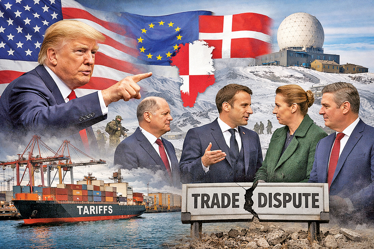 డానిష్ స్వయంప్రతిపత్తి భూభాగ మైన గ్రీన్ల్యాండ్లో నాటో సైనిక విన్యాసాలను ప్రారంభిస్తామని ఇయులోని ఎనిమిది దేశాలు ప్రకటించడంతో ట్రంప్ ఆగ్రహం వ్యక్తం చేశారు. గ్రీన్లాండ్ను అమెరికాకు విక్రయించేలా ఈయూ అంగీకరించాలని లేదంటే ఫిబ్రవరి 1 నుంచి ఎనిమిది యూరోపియన్ దేశాల వస్తువులపై 10 శాతం టారిఫ్ విధిస్తానని, జూన్ నాటికి అది 25 శాతానికి పెరుగుతుందని ట్రంప్ శనివారం మరింత కవ్వింపు ప్రకటనను చేశారు. దీనిని ఇయు మరింత సవాల్గా తీసుకుందని తెలుస్తోంది.