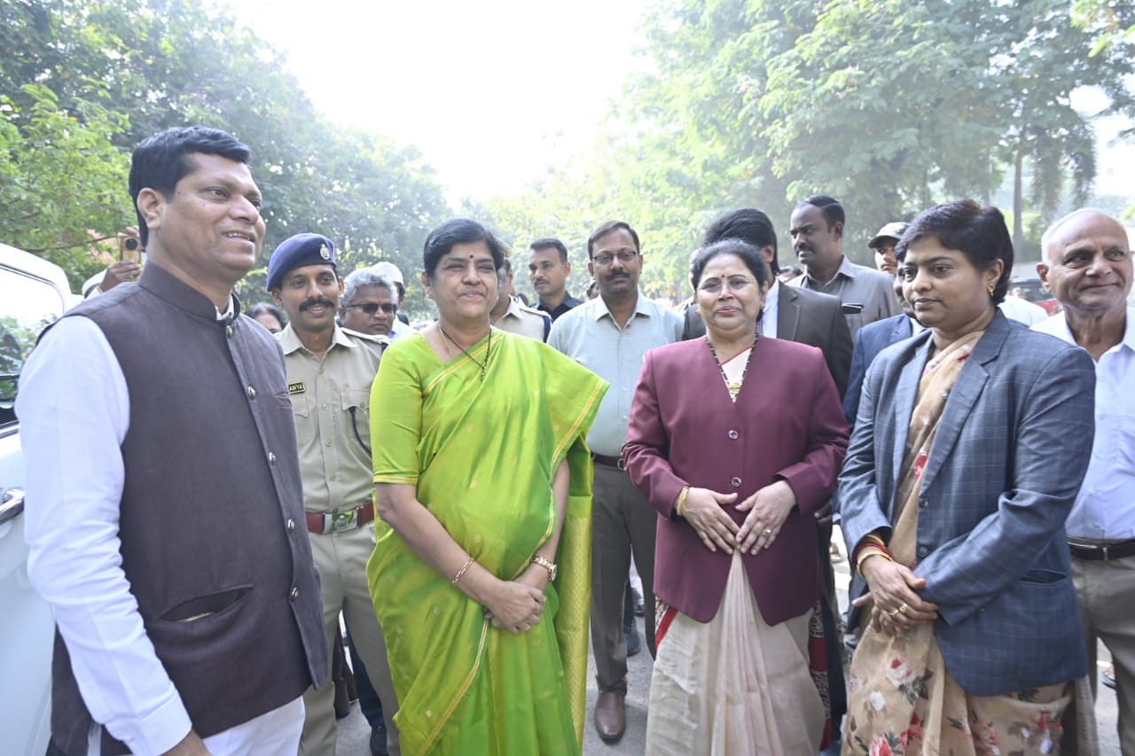 రాష్ట్ర హైకోర్టు న్యాయమూర్తి జస్టిస్ టి.మాధవీ దేవి శనివారం నిజామాబాద్ కు విచ్చేసిన సందర్భంగా జిల్లా ఉన్నతాధికారులు ఘన స్వాగతం పలికారు. స్థానిక రోడ్లు – భవనాల శాఖ అతిథి గృహం వద్ద హైకోర్టు న్యాయమూర్తిని, జిల్లా జడ్జి జీ.వీ.ఎన్.భరతలక్ష్మి, కలెక్టర్ టి.వినయ్ కృష్ణారెడ్డి, పోలీస్ కమిషనర్ సాయి చైతన్య, ఆయా శాఖల జిల్లా అధికారులు, న్యాయవాదులు, బార్ అసోసియేషన్ ప్రతినిధులు మర్యాదపూర్వకంగా కలిసి పూల మొక్కలు అందించి స్వాగతం పలికారు. అనంతరం జిల్లా జడ్జి, కలెక్టర్, పోలీస్ కమిషనర్లతో హైకోర్టు న్యాయమూర్తి అతిథి గృహంలో కొద్దిసేపు భేటీ అయ్యారు. అంతకు ముందు హైకోర్టు జడ్జి పోలీసుల నుండి గౌరవ వందనం స్వీకరించారు.