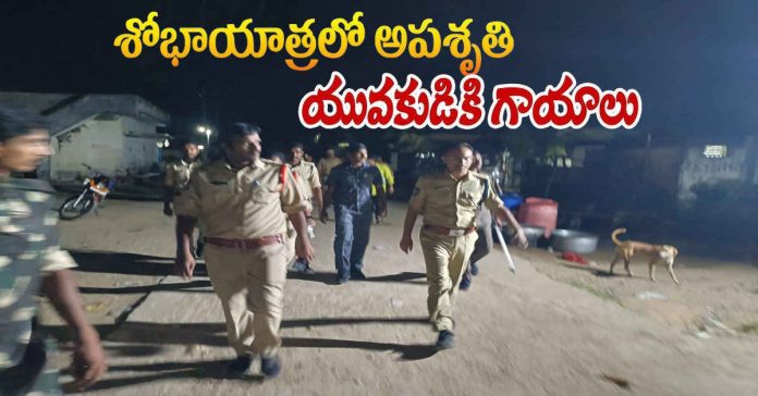 ముధోల్ మండలంలోని బోరిగాం గ్రామంలో దుర్గా మాత నిమజ్జనం శోభాయాత్రలో శుక్రవారం రాత్రి గుర్తుతెలియని వ్యక్తి రాయి విసరటంతో సౌండ్ సిస్టం మీద ఉన్న యువకుడికి తగిలింది. గాయపడ్డ యువకుడికి ఆసుపత్రికి తరలించారు. దీంతో నిమజ్జన శోభాయాత్ర తాత్కాలికంగా ఆగిపోయింది. ఇరు గ్రూపుల మధ్య వాగ్వివాదం జరిగింది.